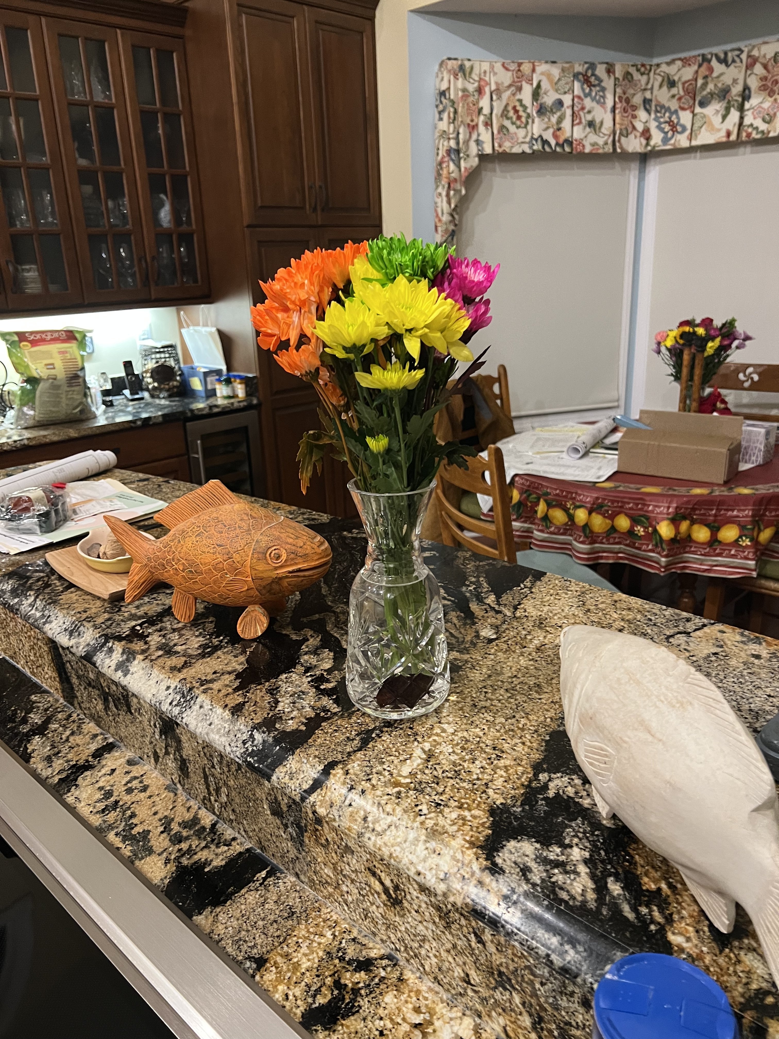 And theseIMG_2059.jpegthe Fish have been around a long time. Flowers seem to make Holly happy. After we eat dinner she has no memory of what she ate or where