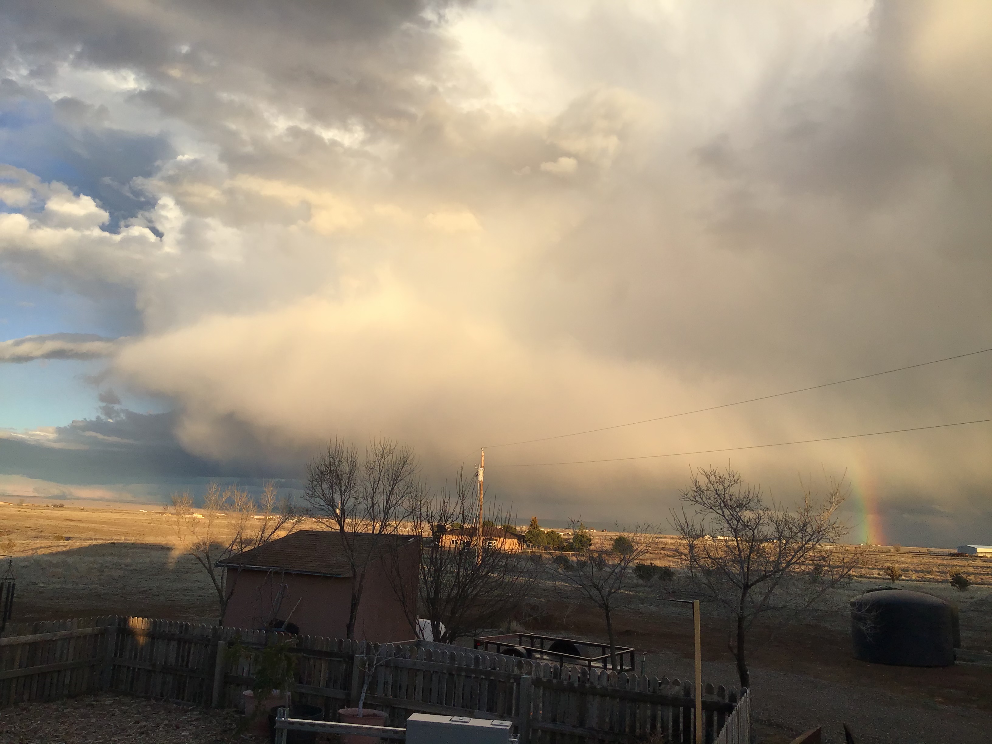 Weird weather here today... was supposed to be sunny, warm around 62. It has been cloudy since around 10 this morning, a few showers this afternoon, and a pic of the latest.... getting cold, temp dropped from 52 to 42 in 15 minutes.