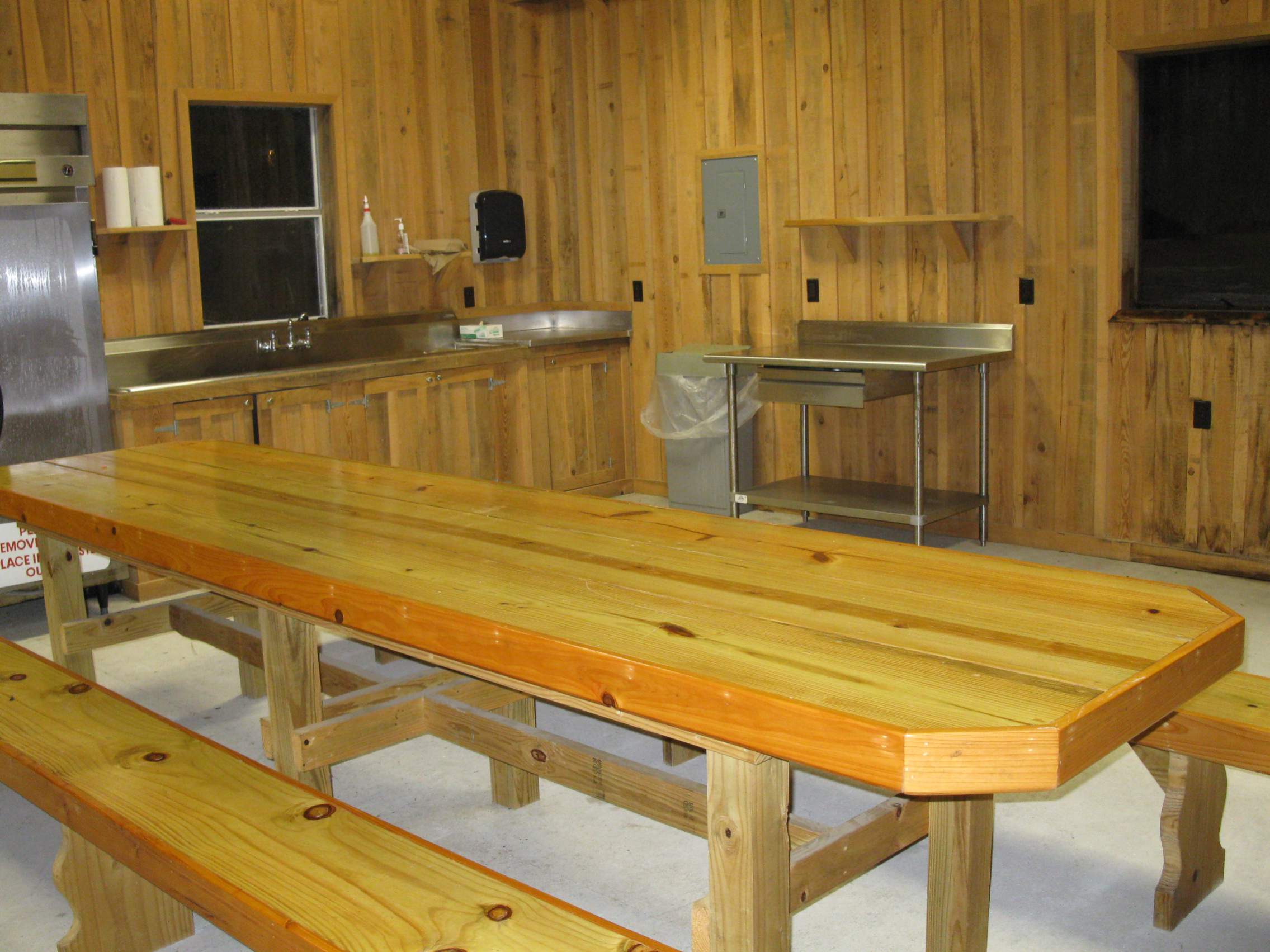 Hey guys, I know how much you all like build projects, so I'll show you a couple we have recently completed here at the Civic Center. My boss's husband is a metal worker, and we got him to knock this grill together for us. The area it is going to go has to have some dirt brought in and leveled then we are going to put down pavers and a couple of benches. It should be nice when we get it finished. And there are a couple of views from the inside of the cook shed. It's a metal roof and sides with screen and rough cut cypress on the inside. We still need to make some shutters to keep out the blowing rain like we had today, but that will have to wait until the money shakes loose in the budget. We grilled {on a smaller grill} our Christmas party lunch out there and ate it in the cook shed. Lots and lots of rain today, but with good food anything is better.