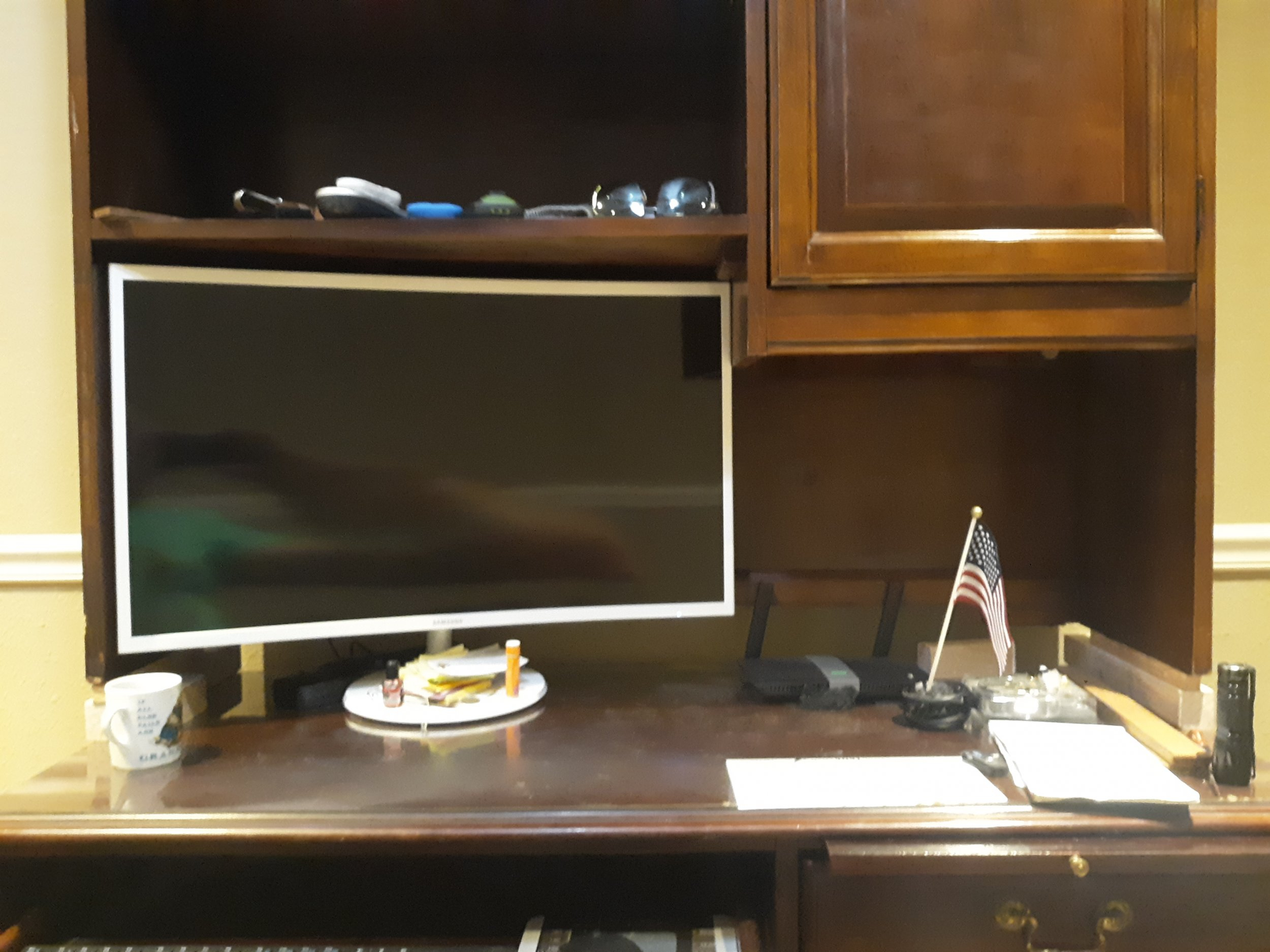 Kyle plan B is much better than plan "A". As you can see desk was not intended for this size monitor