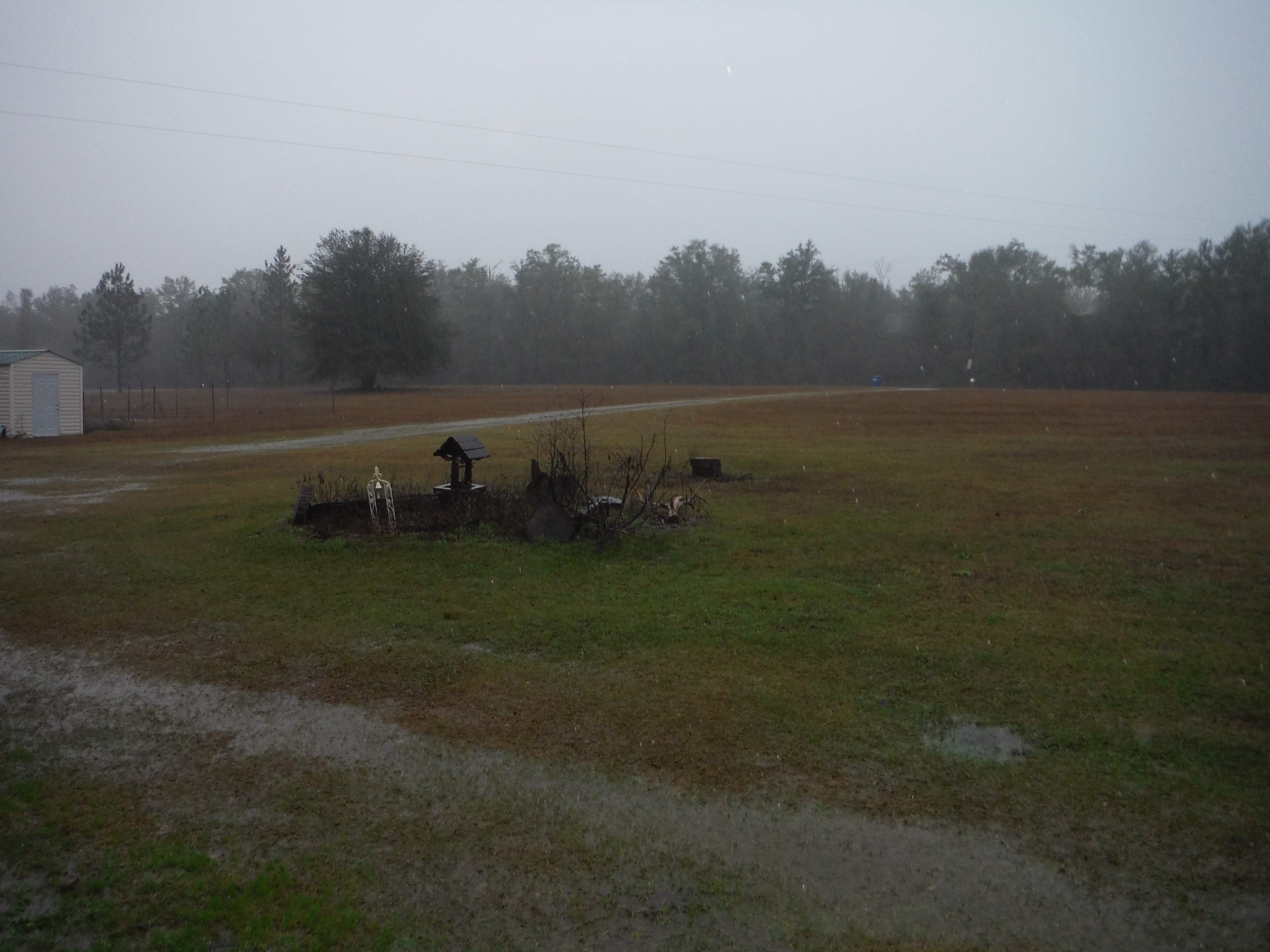 Drew I didn't take a picture of my back yard this morning, but here is the front yard. The standing water you see is due to a few loads of dirt I brought in to smooth out all the deep ruts from when the house was built. With all the sand everywhere else, it could rain an inch an hour, and there wouldn't be a mud puddle.