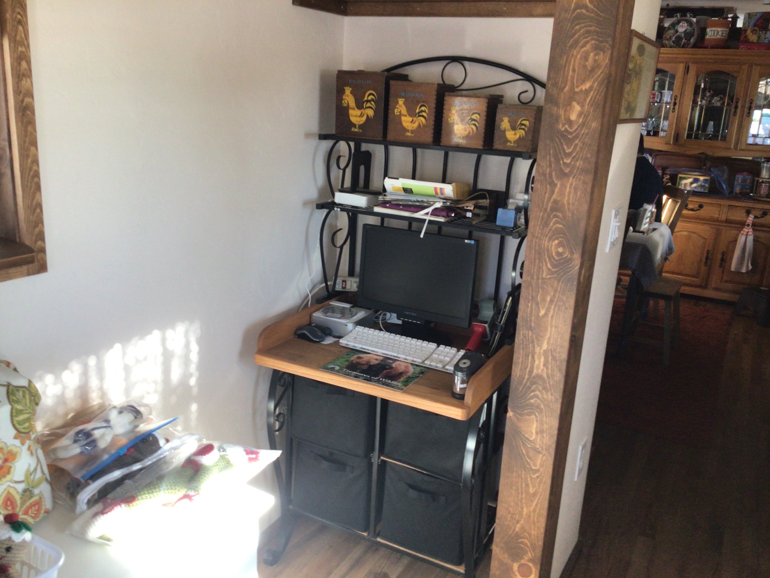We keep looking at the spot the 'desk' used to be.... it seems strange to see the open space. I have another project lined up.... going to build a tall cabinet custom sized to the space. The Fiber-optic internet equipment comes in at that spot, so the cabinet is a necessity to house all the stuff now sitting on the floor.