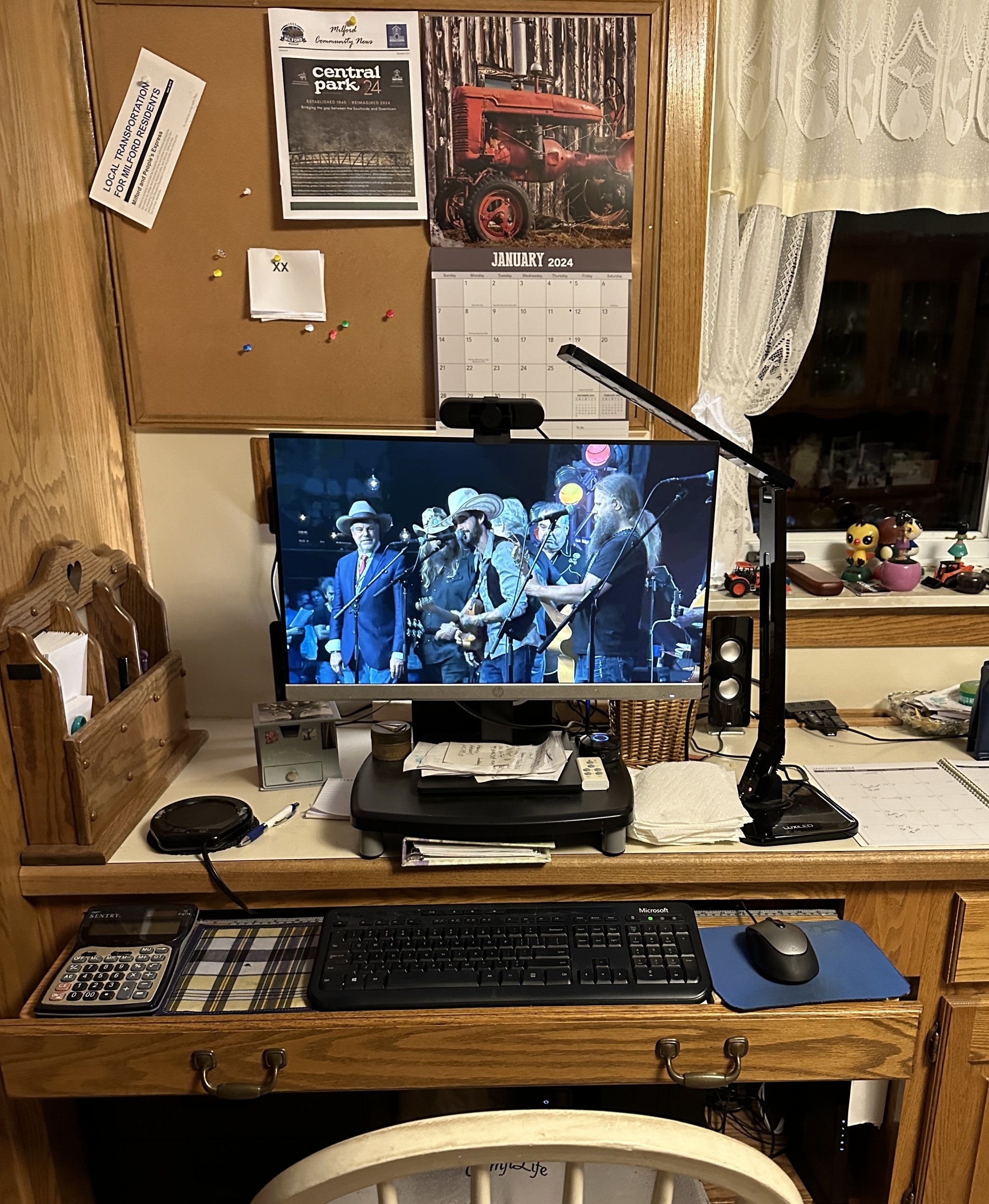 Since Drew posted a picture of his desk, speakers and computer. Here is mine. Where I set to post my morning reports. Speakers and subwoofer are behind monitor.View attachment 842170