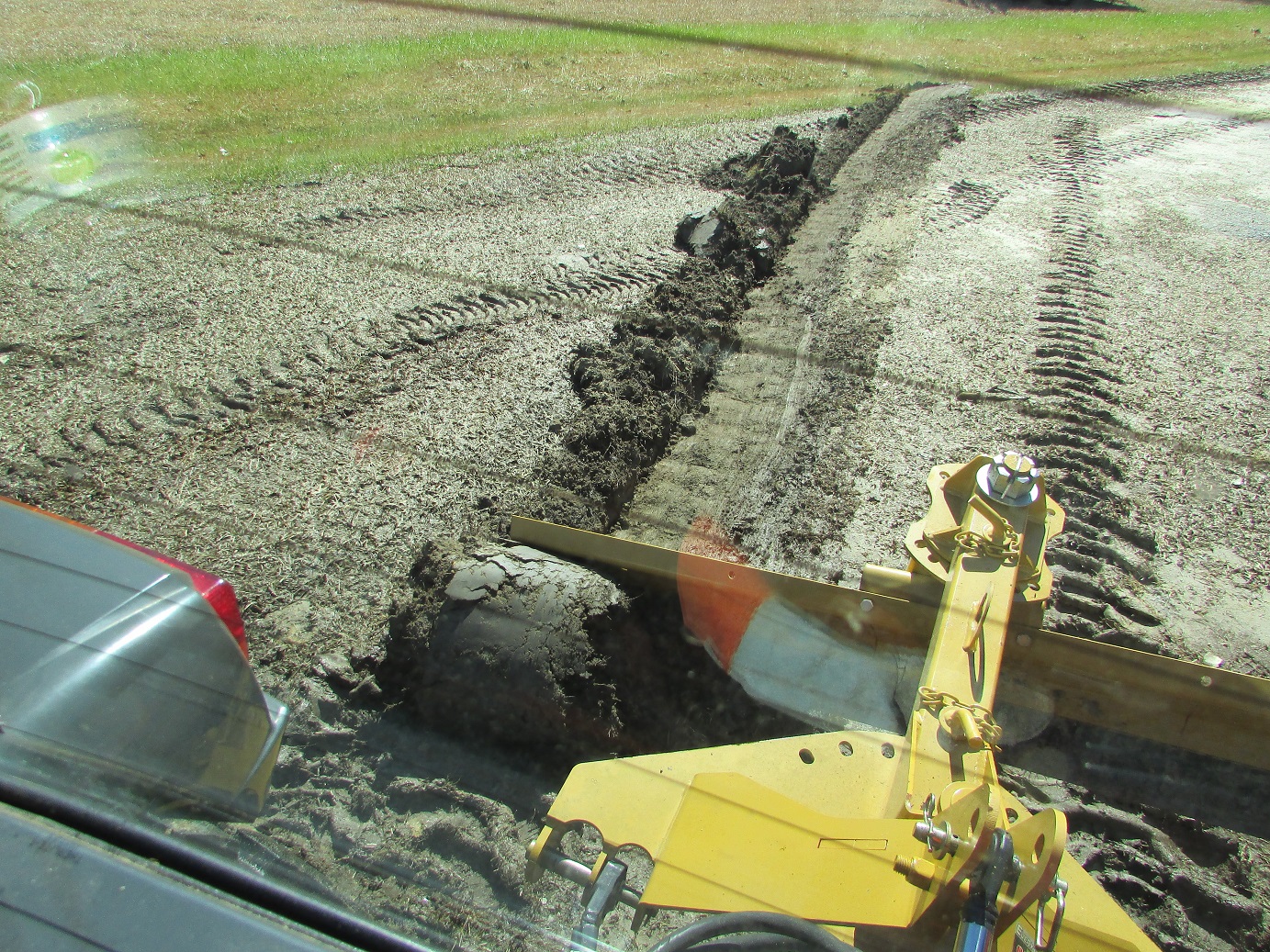 I also played around with my rear blade, finally; pic is of first pass with blade angled down cutting a very shallow water ditch.