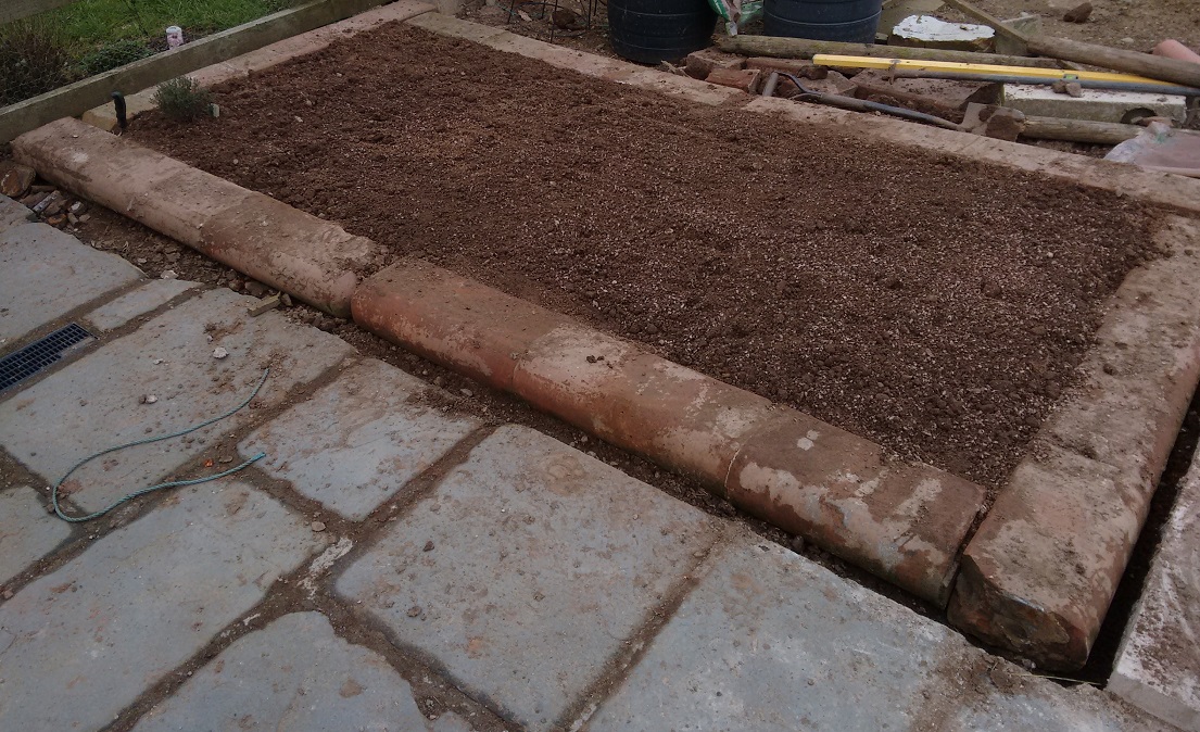 The bed is 4' x 8', with retaining walls made out of old terracotta posts. At the moment there is only one lonely thyme plant in there - had to leave plenty of space in case RNG is sending some more .