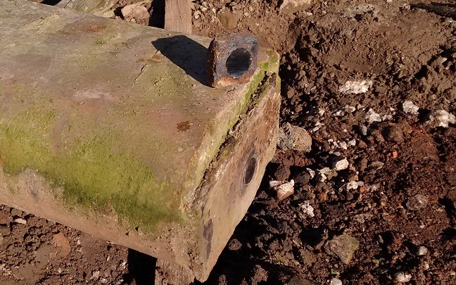 The posts were salvaged a few years ago from the stalls of a neighbour's old cow byre that was being demolished. In their time they must have been state of art, really well constructed, with a 1" steel reinforcing rod running down the centre. Despite being a hundred years old the steel extending from the ends had only surface rust and looked like new when I cut each one off.