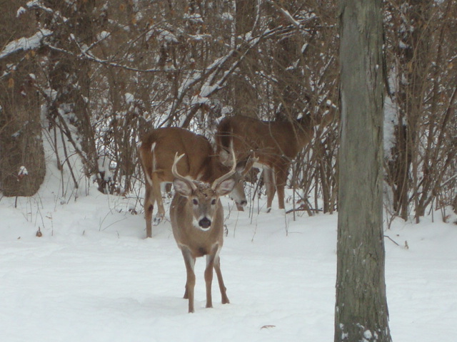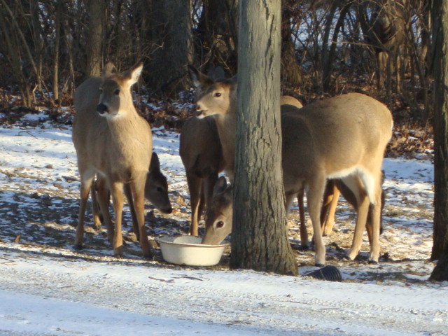 After the turkey left the group of 7 deer showed and then the group of 3. They know it is going to get down into the teens tonight and made sure they got some corn. City folks don't know what they miss out on. Love it out here.