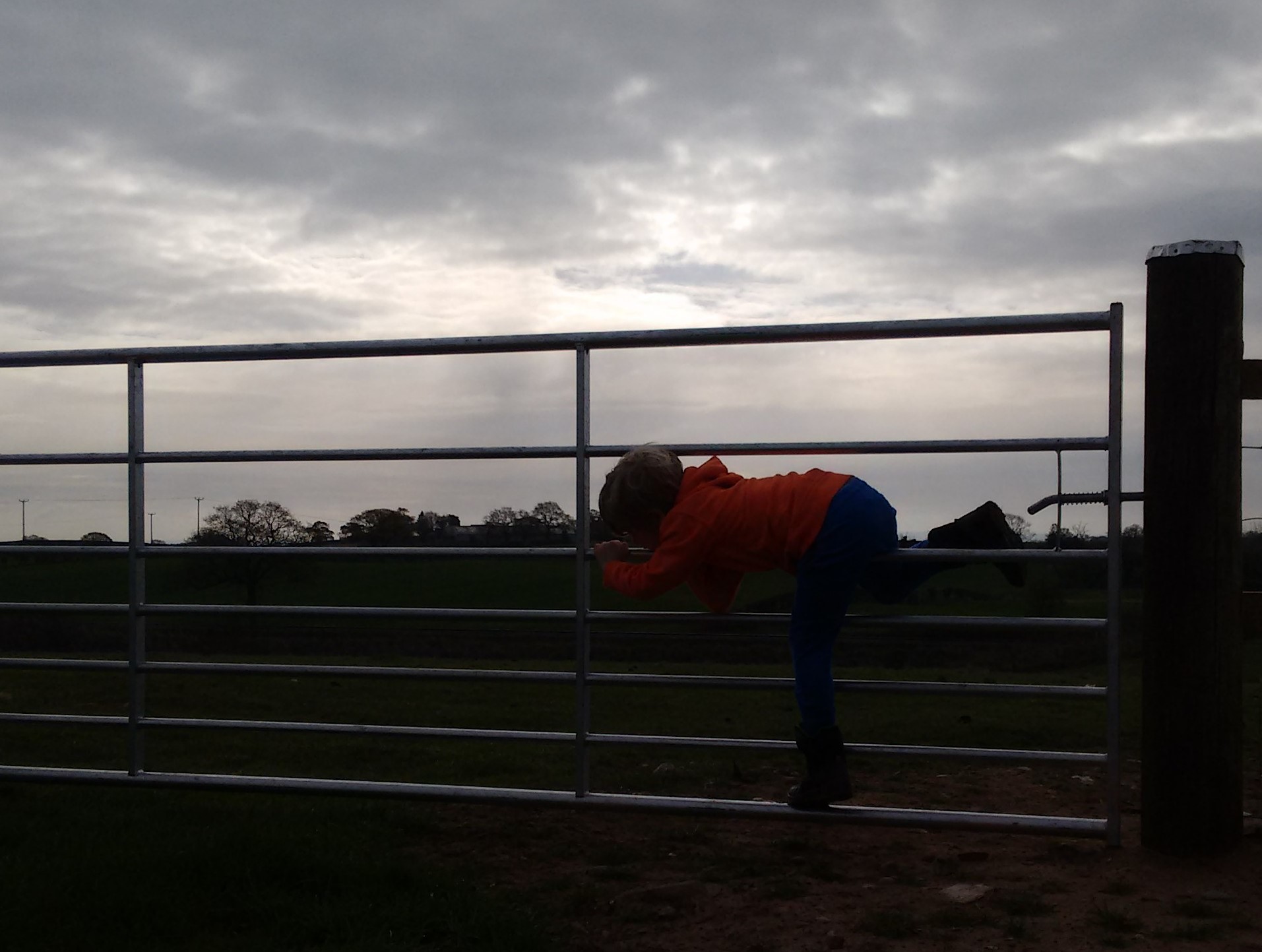 When our grandson stays over, he usually gets me up before the alarm can ring, although this morning the woodpecker again had me awake slightly before he came crashing in. Ben was keen to go out with me first thing to check on the sheep. Instead of waiting for me to open the gates, he has discovered he can now climb through in seconds.