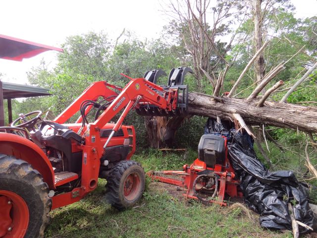 that's a big tree....you may need help; maybe another FEL at the same time getting the load off