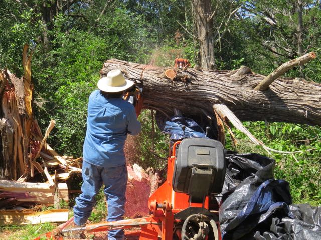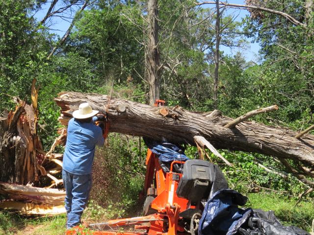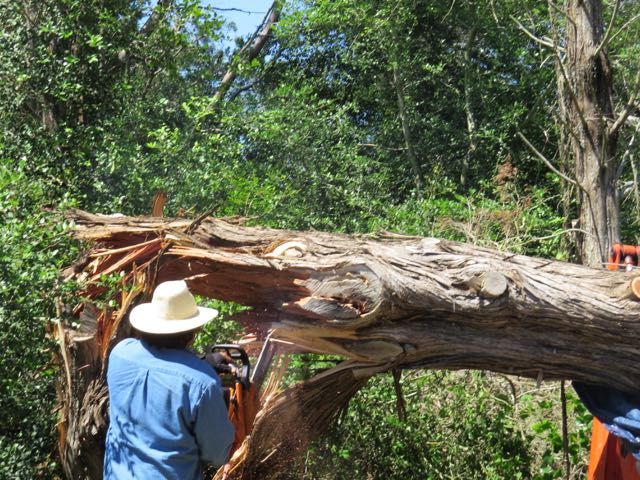 Good morning! A cool 54˚ this morning is it January or May in Texas? This is wonderful, mostly sunny day, waiting for my tree man to call. I'm interested to see If he is thinking the same as me and would make the first cut the same place I would have, and what his plan is to keep extra weight off the BH during the process.