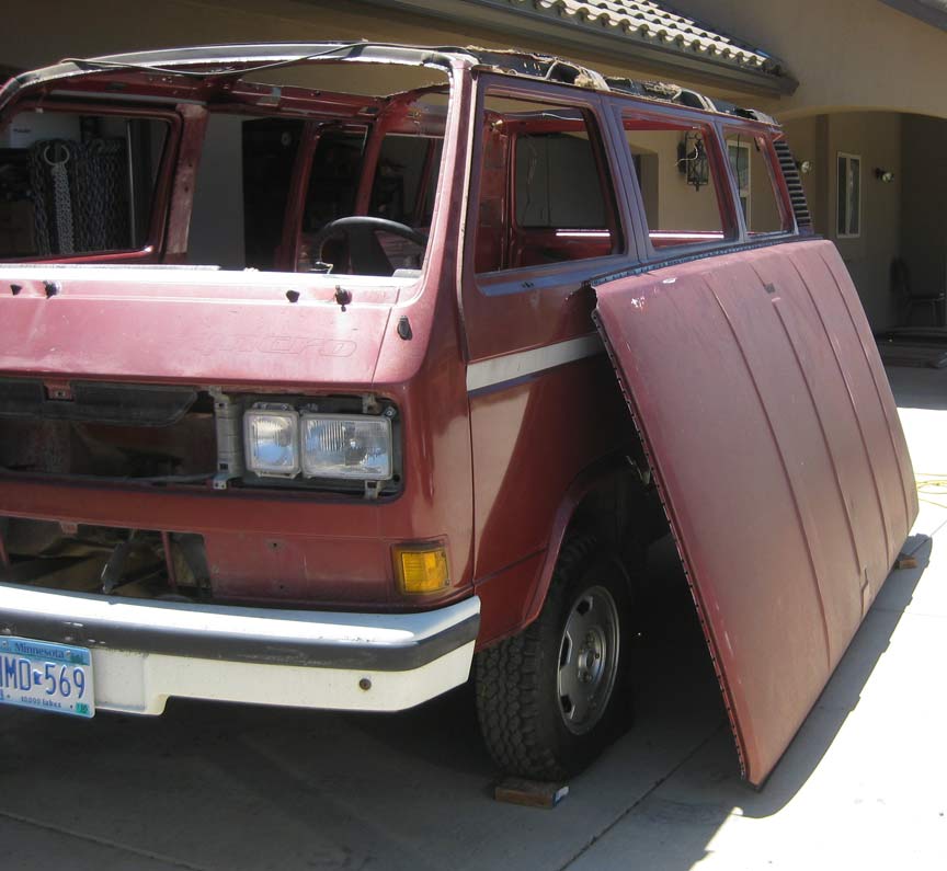 Gotta admit that putting the cutoff disk through the door pillars and roof involved a fair amount of trepidation, as this is the keeper vehicle. I think today will be the first trial fit of the pop top roof; hopefully the fit is good. :eek: