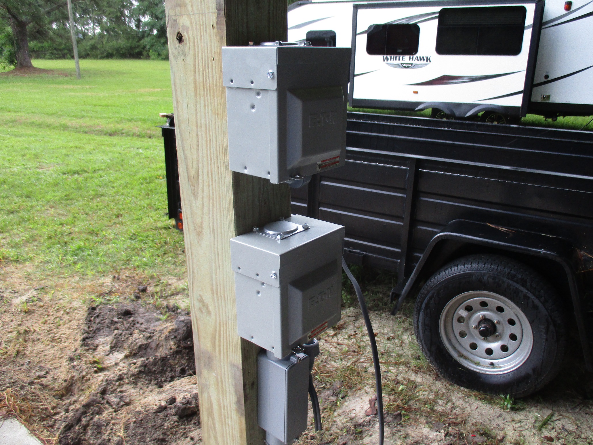 Day before yesterday a new Ez-Up awing was delivered, and I took a few minutes to unpack it and set it up over the van. The instructions kept referring to a partner to set the thing up, but by making lots of trips between the four legs I finally got the thing together and the top on. Really made a difference in how warm it was working inside. It was also pretty easy to move around, but again I had to make a lot of trips to move one let a foot or two at a time. The nice thing was it was really quick to take down, and the wheeled carry bag makes moving the thing to storage easy, too.