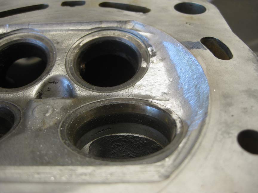 Had a go at the cylinder head with the die grinder, and wasn't happy at all with the chunky finish and skittish handling. Couldn't find the sanding rolls, but did spot the little 3/8" band sander and gave it a try. It worked very well, and I think I even have the mechanic's endorsement.