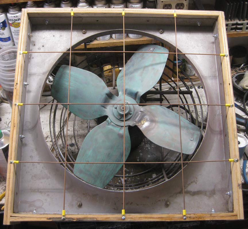 Started work on a holder for the lint filter. Had some welding rod laying round, and am trying ring terminals to secure the ends. Probably end up re-doing it with welded on washers, but this was worth a quick try. Still need to find a piece of plywood to lay over the filter, but I don't feel like digging around in the wood pile when it's 97F outside.