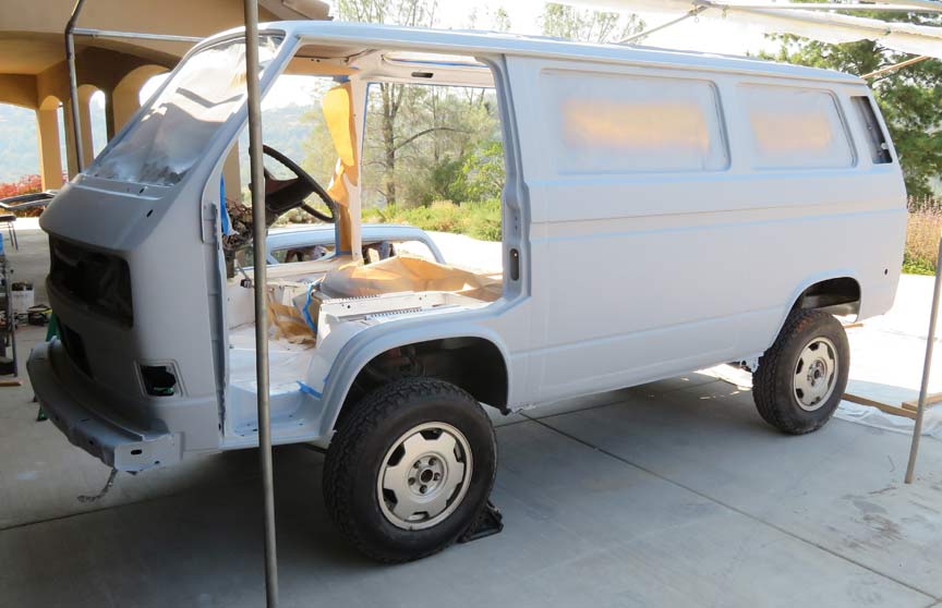 Spent most of yesterday sanding the small ridges the masking tape left next to the body sealer seams, but started by filling the rain drip rails with self leveling sealer. The bodyman/neighbor suggested an early 7AM start to take advantage of cooler temperatures, something needed for the self leveling to work before the epoxy hardened. By 8AM there was still no sign of him so I started without him. And by 8:30 I was done. Turned out to be a non-issue, as all that was needed was to hold the trigger on the gun down long enough to supply a large bead of the stuff, and it sloooooooly oozed out to very evenly cover the floor of the drip rail. I used all of one cartridge, running out on the last four feet. The last bit of sealer came out with bubbles, and those froze in the epoxy, so I had to pop them and then cover them with material from the new tube. But that was the only wrinkle. Can't blame my friend for wanting to sleep in, as he does this all week and if I were him the last thing I'd want to be doing at seven o'clock on a Sunday morning is working on someone else's van. :laughing:
