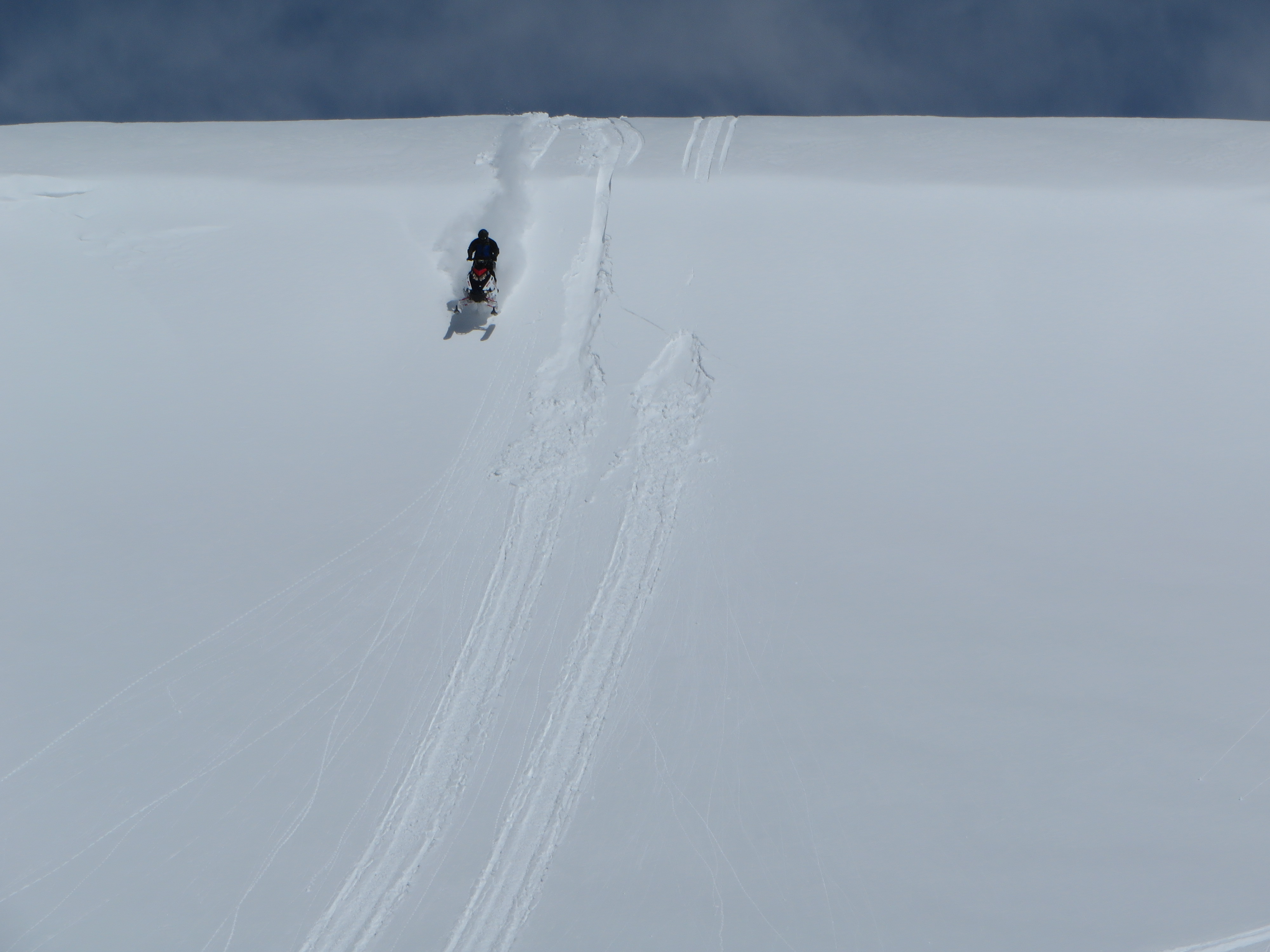 For those who ask how I get air going uphill, here it is. In this picture we are jumping off the cornice going down. However, that hill would have been great for going up and jumping at the cornice. All it takes is a lot of speed. The snow was fresh and soft in this picture so I think if we would have jumped uphill we could not have gotten enough speed and might have gotten stuck on the landing. Thats why we were jumping off not up. In the prior picture (red sled) I was going about 45-50MPH when I hit the top, so lift off was easy.:thumbsup:
