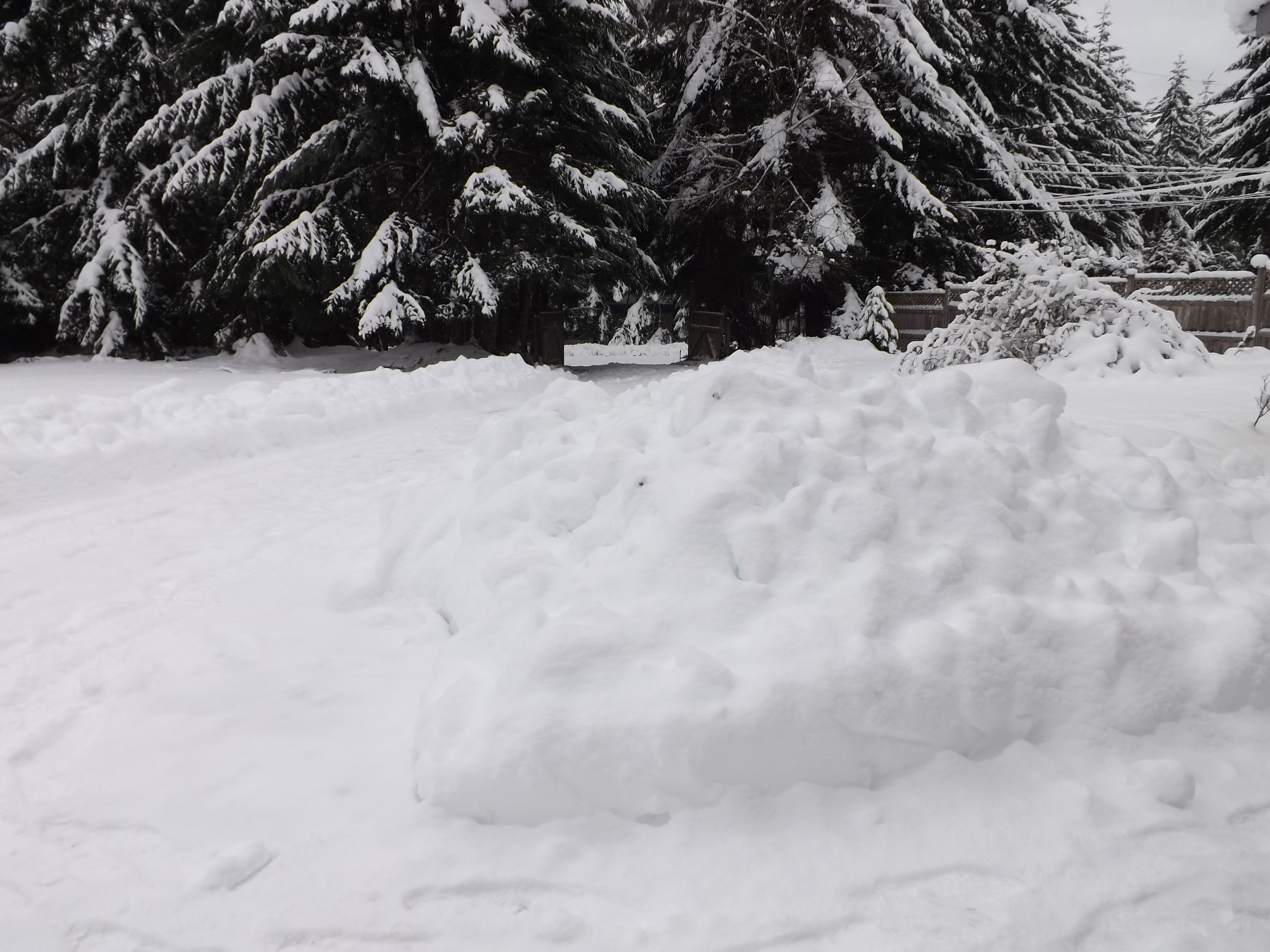 Got a line on a local guy with a big snowblower who will do it for reasonable $. We have not had much snow here for at least 5 years so no need to shovel, plow or snowblow in that time. Good chance it will be a few years before we get this much snow again. There is a town called Campbell River about an hour's drive north of us got close to 30 inches or so.