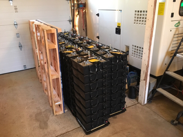 We all know what they say about best laid plans.... installers arrived about 9:30, they missed final turn to house but figured it out. We're late because wrong batteries (older set) were loaded and had to be changed out for newer. So discussed job with lead guy after some traditional "talk story" and helper starts unwrapping when lead gets a call back from boss. Seems 24v pallet was loaded s my 48v. These come factory configured. Getting my 18 batteries is 2 trips with the warehouse about 45mins away. Concern is the exchange and changeout might run into evening. I agree it would be best to wait until this morning, but suggest depending on revised schedule it might be beneficial to drop off first load in afternoon. So now I have 12 of my 18 batteries sitting in my tractor shed. Guys should arrive with remaining 6 first thing this morning.
