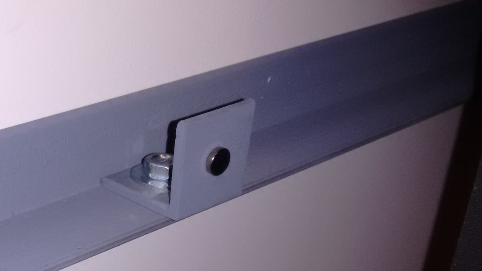 Magnets are proving to be something of a revelation. The steel I used for the back of the fire surround is only thin, so although it is secured in slots at the sides, it was always going to need more support towards the middle to hold it onto the frame. Instead of having to use visible screws, these tiny magnets, smaller than an M6 nut, are enough to hold it in place without any fixings showing. Now to find a piece of steel for the top.