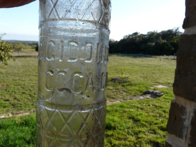 I found out through the newspaper that in the early 1900 there was a Coca Cola Bottling Co. on the corner of Burleson St. and Hwy 290. The coke bottle survived 100 years out here in the sand. Since Coke did not eliminate the cocaine till 1929 this is an original recipe cocaine coke bottle.