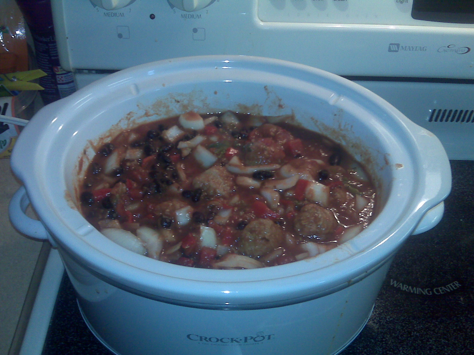 In a 3 1/2 quart crock pot, combine the following and cook on low setting for 8 hours: