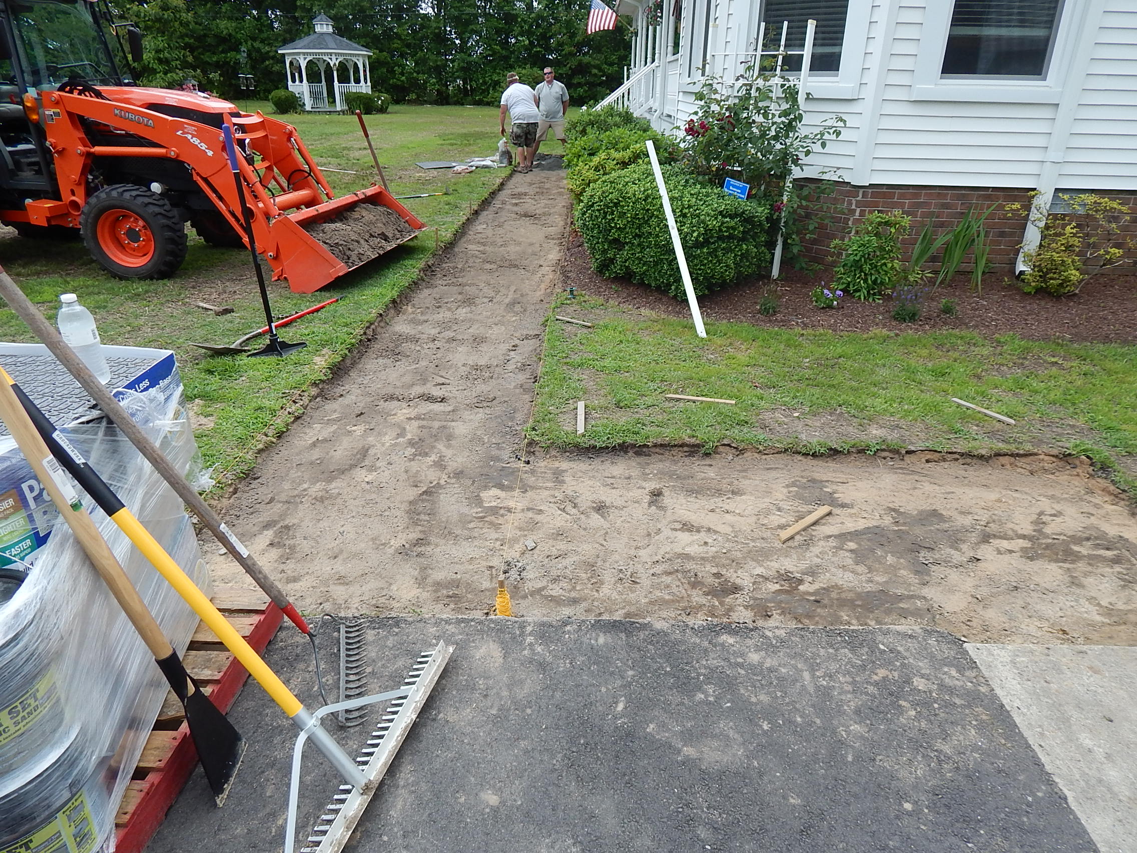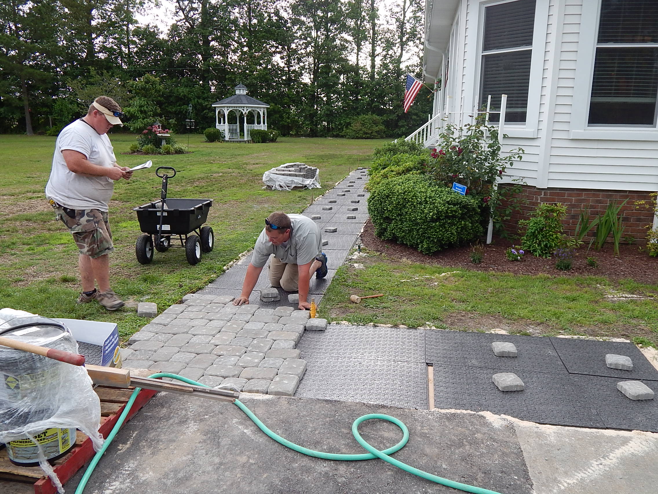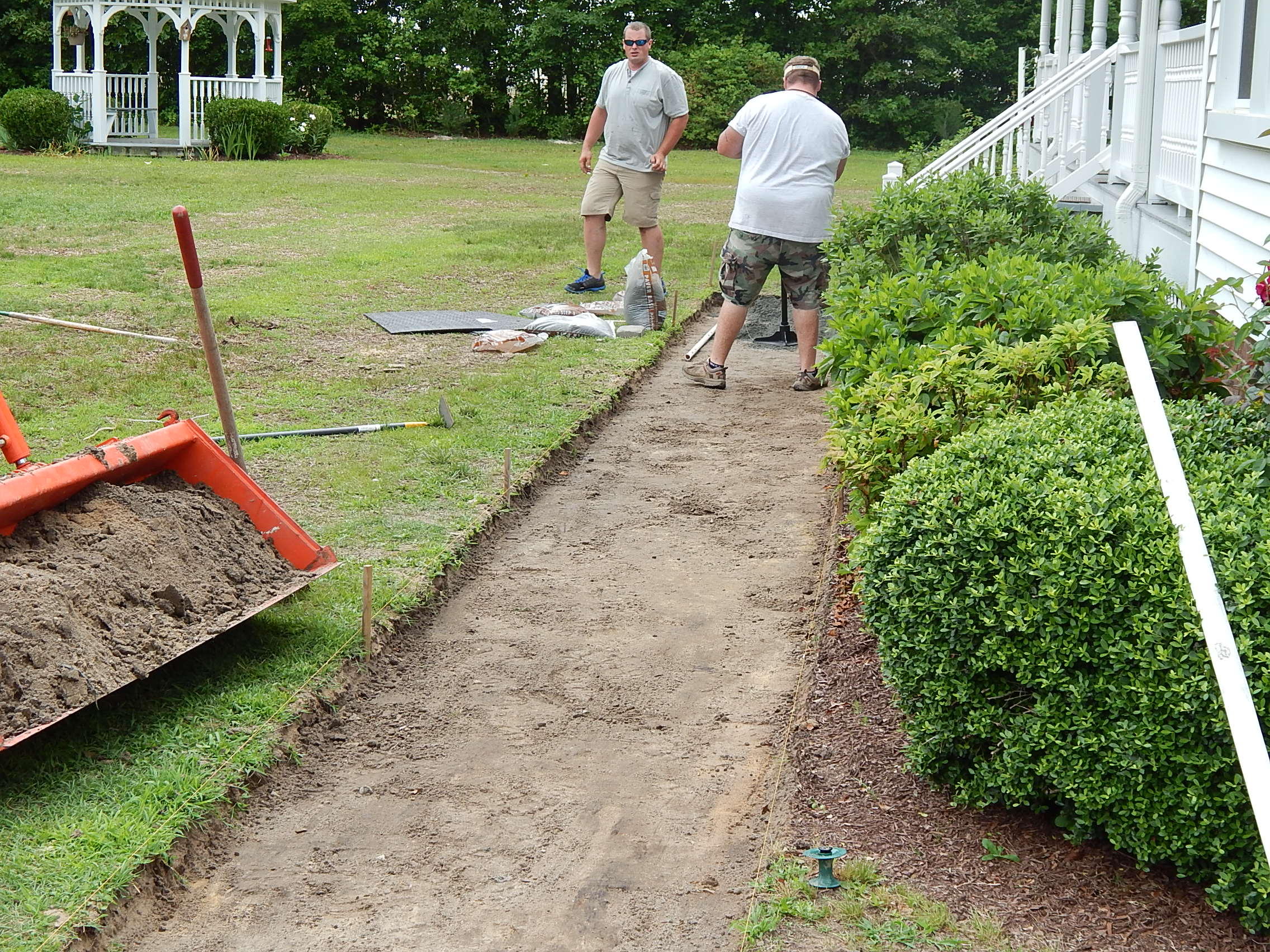What I did not like was finding I had two mini sinkholes in the walkway bed. One shovel handle went down half its length. My two firemen are not small guys for sure... and they really worked on those two soft sections. My roller would not fit, so they hand tamped over and over.