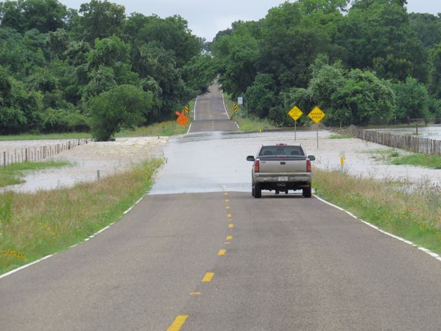 My gravel road is now passable, but the first bridge I come to is not. The water level here is still rising from the run-off.