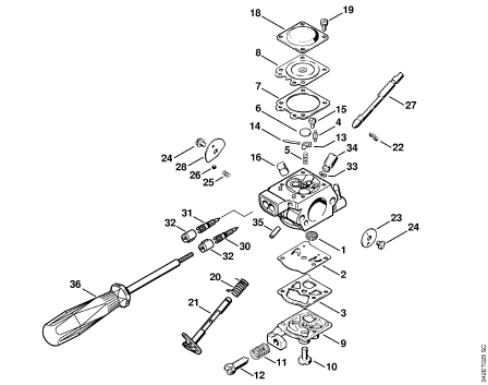 I also remember taking the carb with me to the dealer, and it was a good thing I did. It turned out, at least in this case, that Stihl used two different carbs on the same saw, so the parts man avoided having to guess.