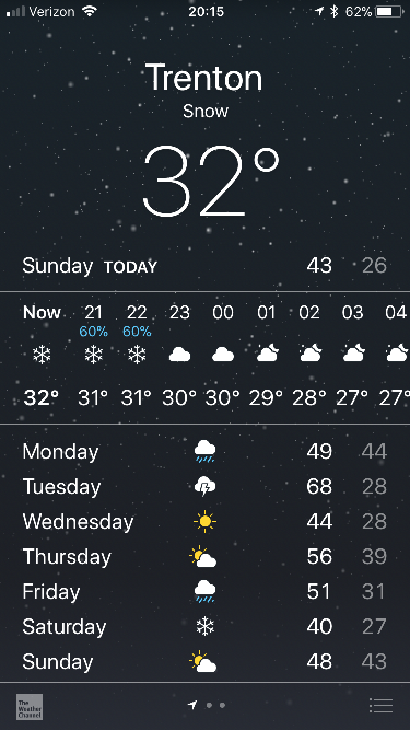 Cloudy and 22 here in Eastern Missouri. Kids got a snow day after thunder snow dropped 4” in about 30 min. Funny as today was supposed to be a make up day from a previous snow day. Back to the grind tomorrow after a weeks vacation at home. I already hate my alarm clock