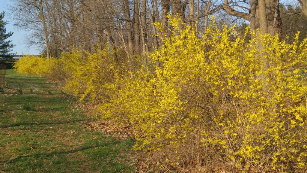 Forsythia in full bloom now. This row was transplants from the family farm. 0406191807.jpeg