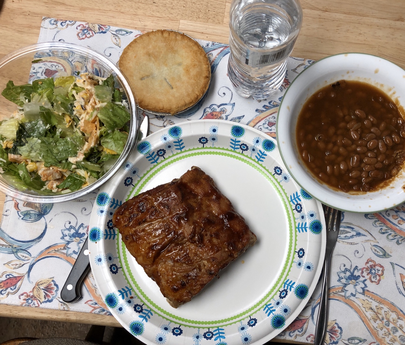 A single guys dinner. Southwest salad. Ricks ribs in instapot. Baked beans and blueberry pie. I am full. Adjustments.JPG