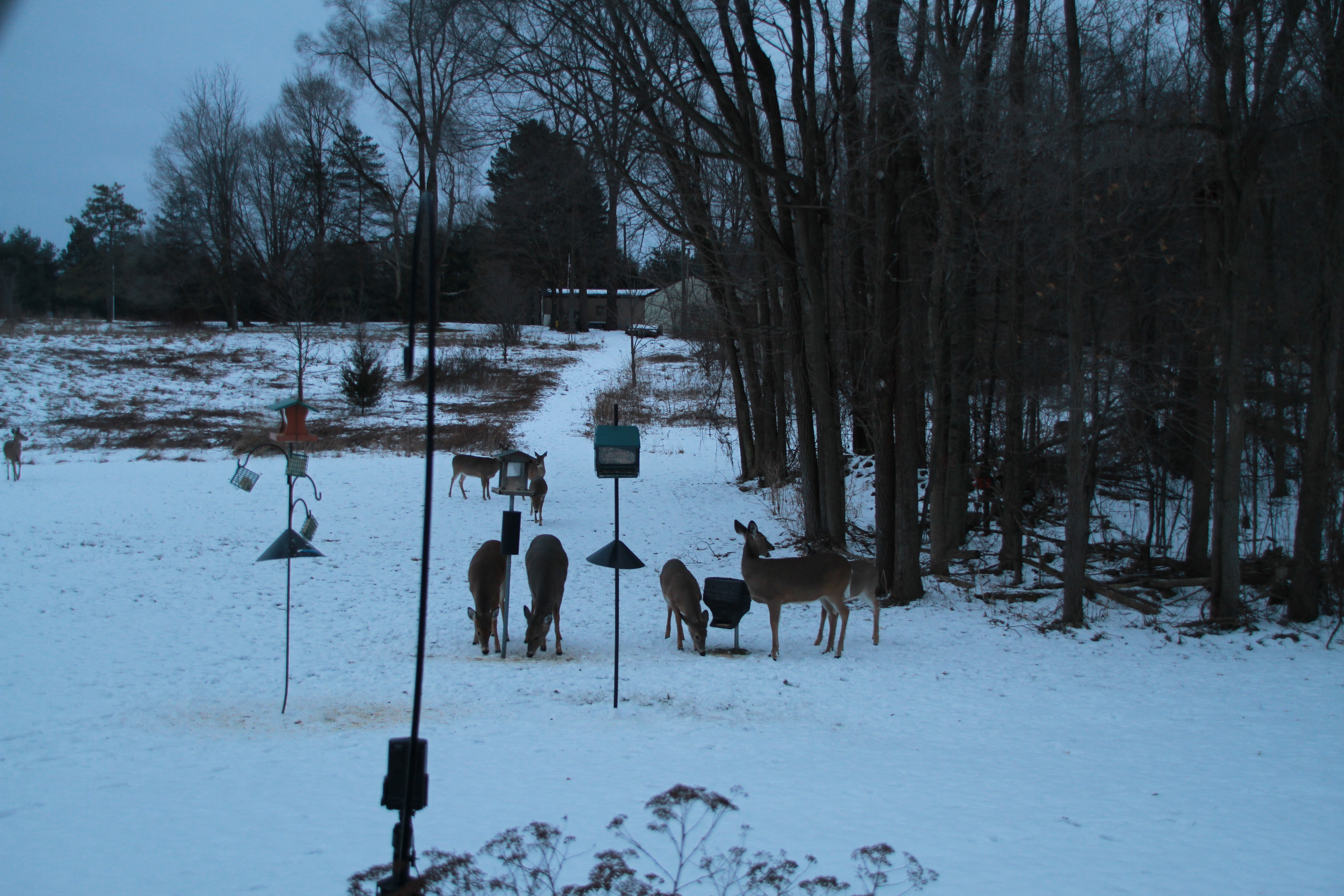 Park that is little over a mile east of me is culling deer this week. Saw 13 deer a feeder yesterday evening. Got 11 in the picture.
