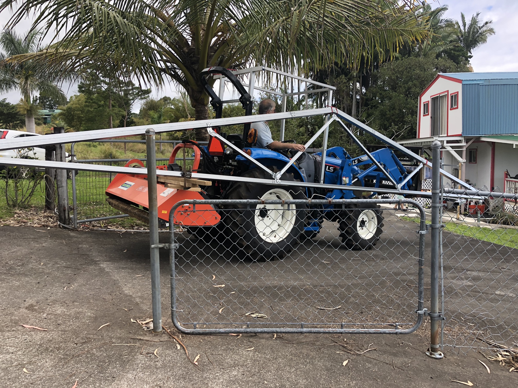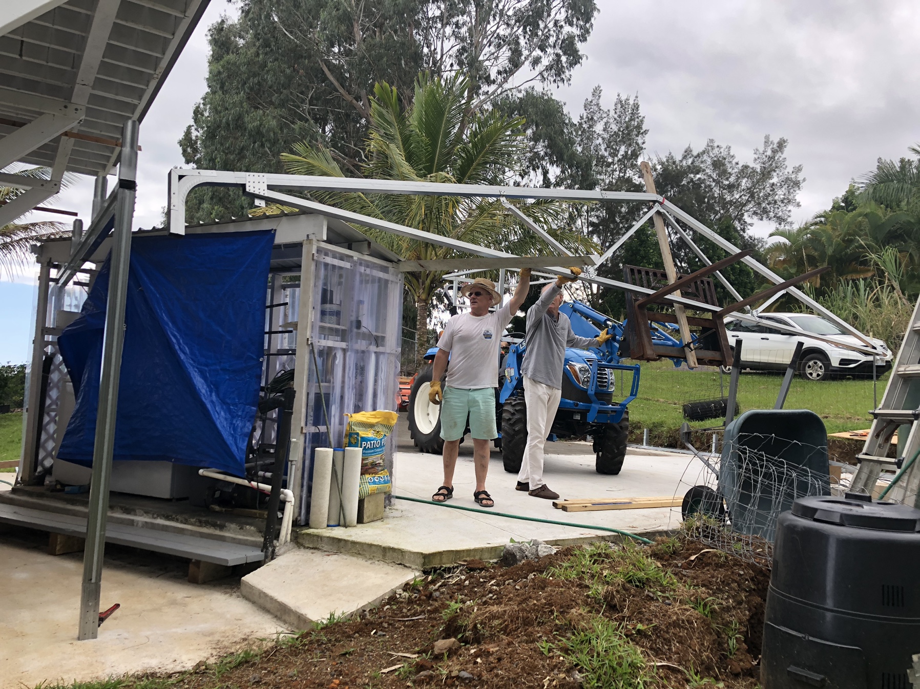 Sodamo, that looks a wider span than I first expected, great excuse to get the tractor out. Are flip-flops and a straw hat mandatory safety wear for construction sites on Big Island ? :)