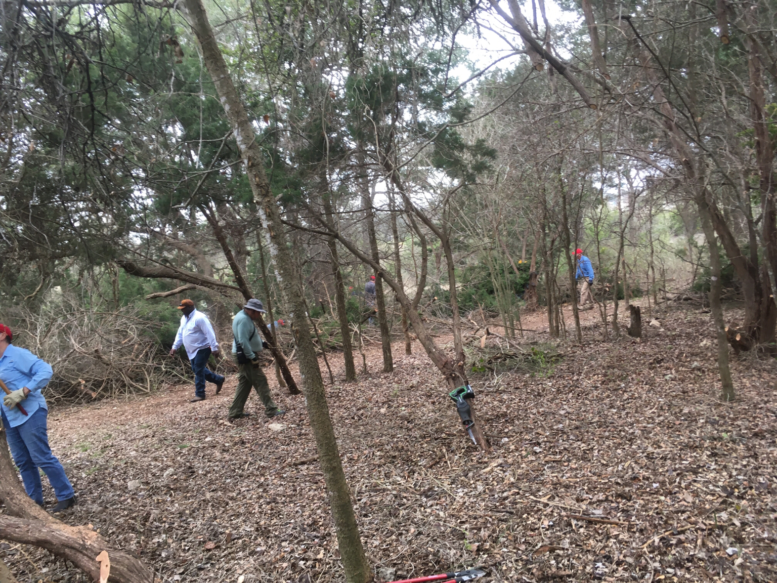 Morning session was a rare combo of Trailblazers and FireWise people. We had a large group of about 20 clearing underbrush with loppers two battery sawzaw's and my chainsaw.