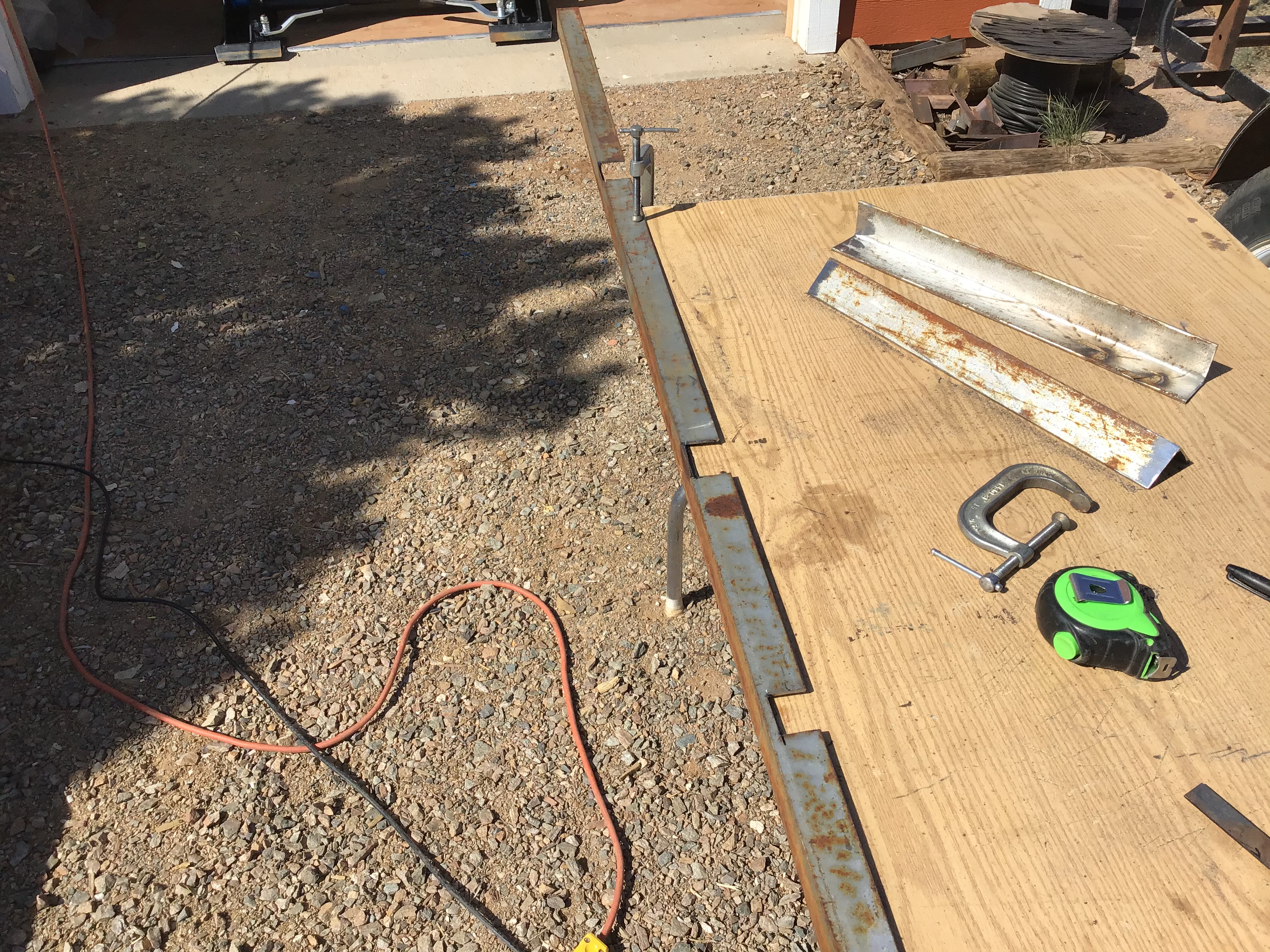I got a little progress on the trailer. Got the front supports cut, prepped, and clamped in place ready for welding. I have 1 of 2 center supports notched and had to take an indoor break.... too hot in the sun! Shade is working its way around to where the trailer is, so maybe finish the second one later. I have decided that diamond plate is going on the deck vs. wood, hence the extra supports. Here's a few progress pics...