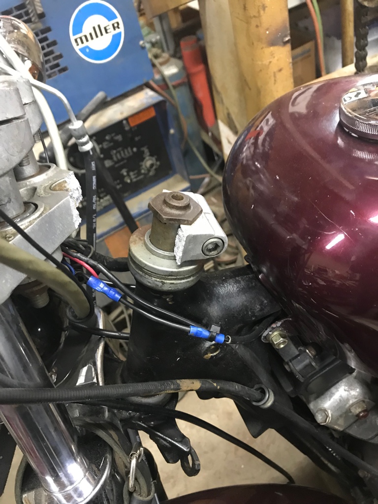 Imagine how much force it took to pull the top triple clamp apart like that. The frame was bent and the engine case was cracked as well, so I elected not to buy it back from Haggerty.