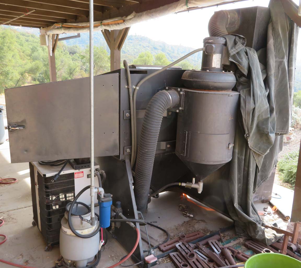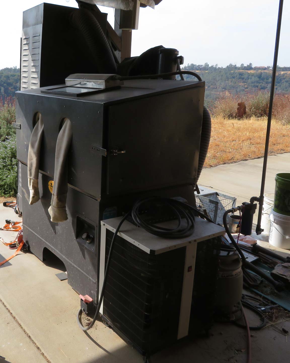 Oh, one thing I didn't mention before is the refrigerated air dryer you see just below the open end of the box. Probably don't need it in the summer out here, but in the winter water literally runs out of the thing, water that used to be in the air. If there's enough, it'll clog the nozzle and you won't get much done.