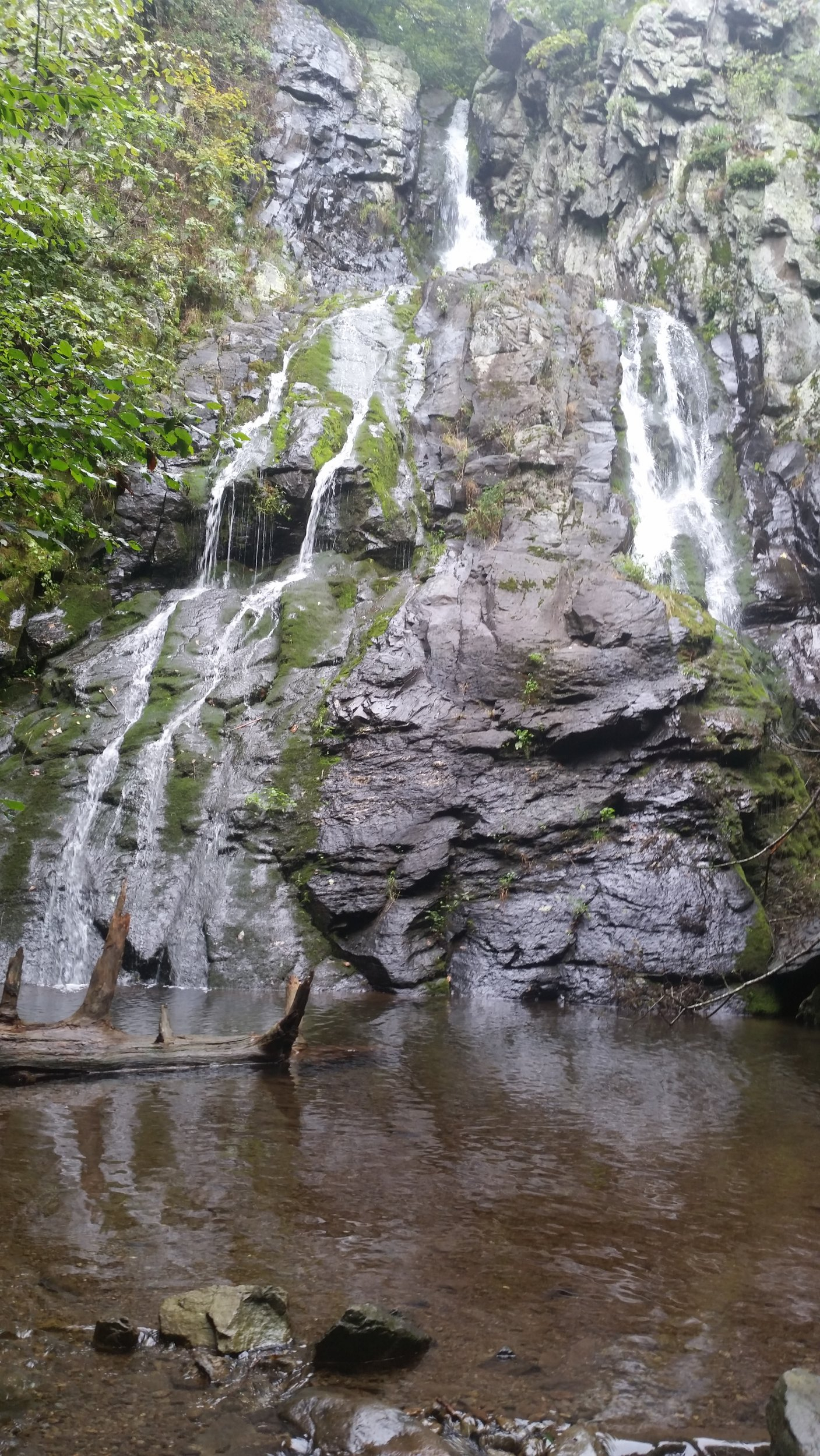 I spent time in the clouds in the mountains yesterday. Nice misty hike to this 85 ft waterfall. Because of drought, stream levels are low...so low they have suspended fishing in the streams due to stress on the trout...but still enough water to give a little show...