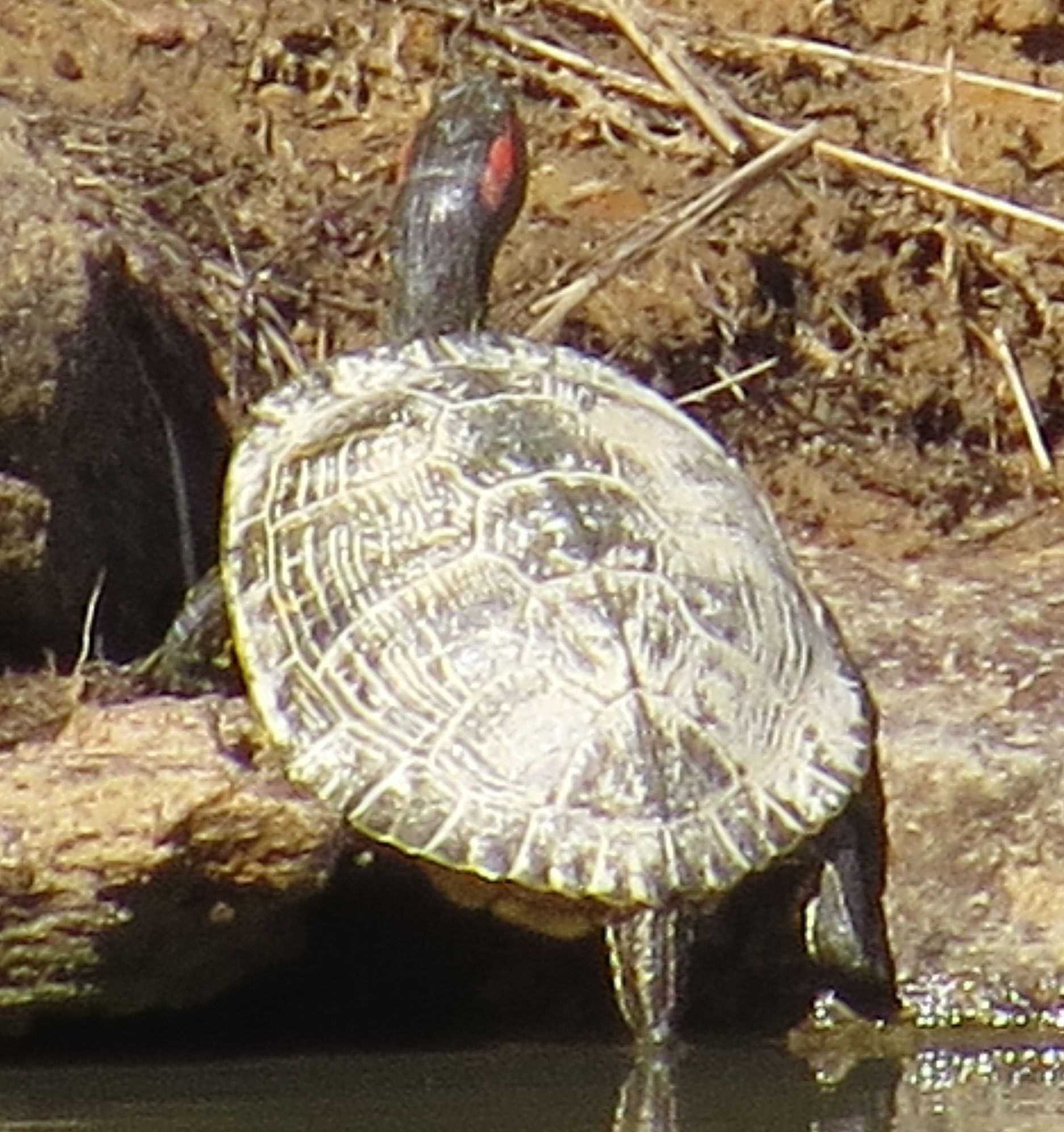 That could have been dried clay on the shell. Nice picture. Turtles do not like getting photographed. My camera is never ready when I kayak and drift upon the resident fauna.