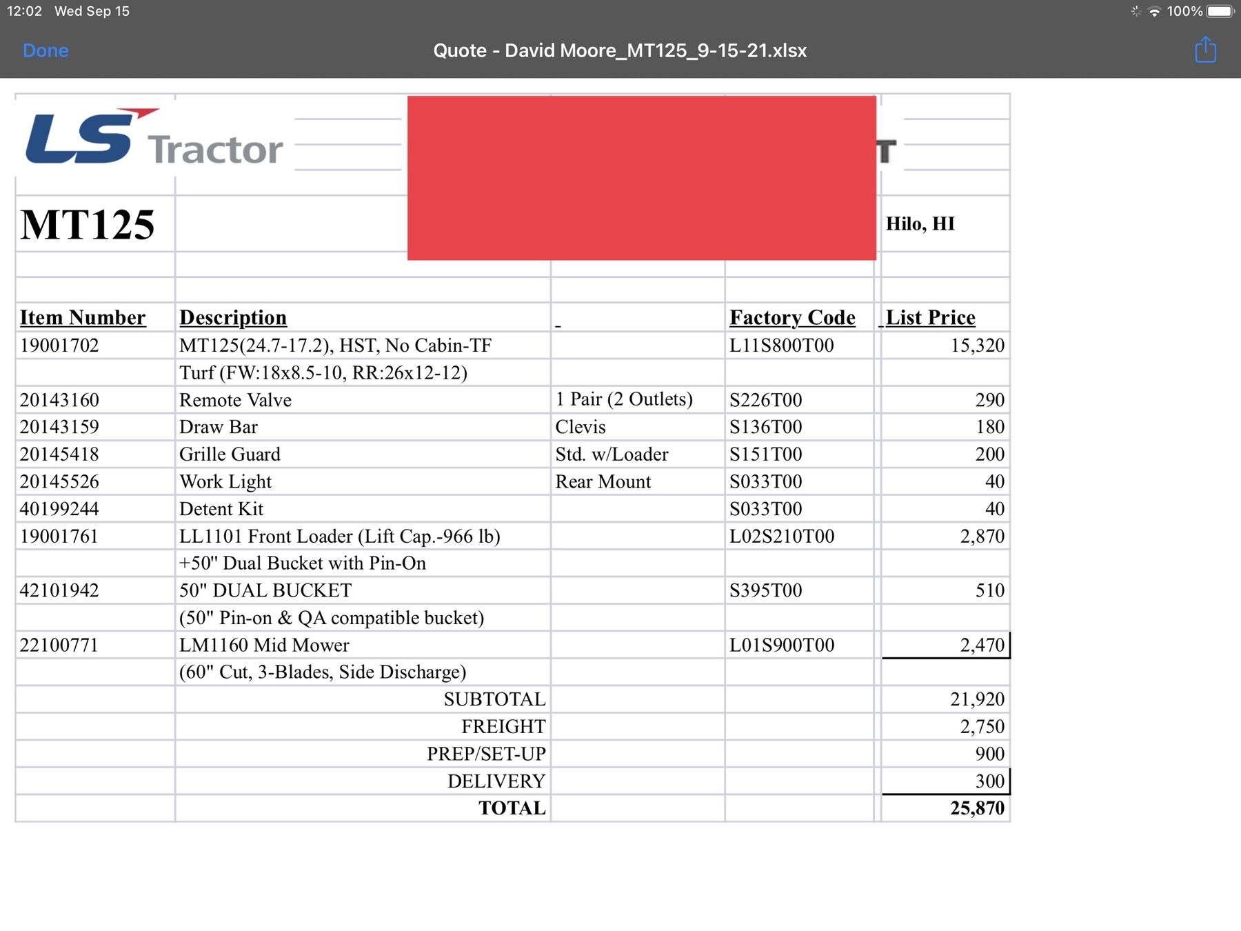 Got a quite high quote on LS MT125 for Sophie. Thousands more than expected. This is a new dealer, replacing the one 1 bought from. My guess from their main website is they are more a corporate supplier vs user/consumer.