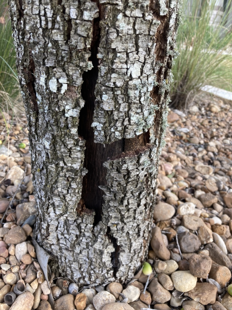 Just piddling around the yard I found freeze damage from February splitting the bark on the trunk of my only live oak tree. The foliage looks healthy and I'm going to see if it self heals. Has anyone else seen damage like this and does the tree survive?