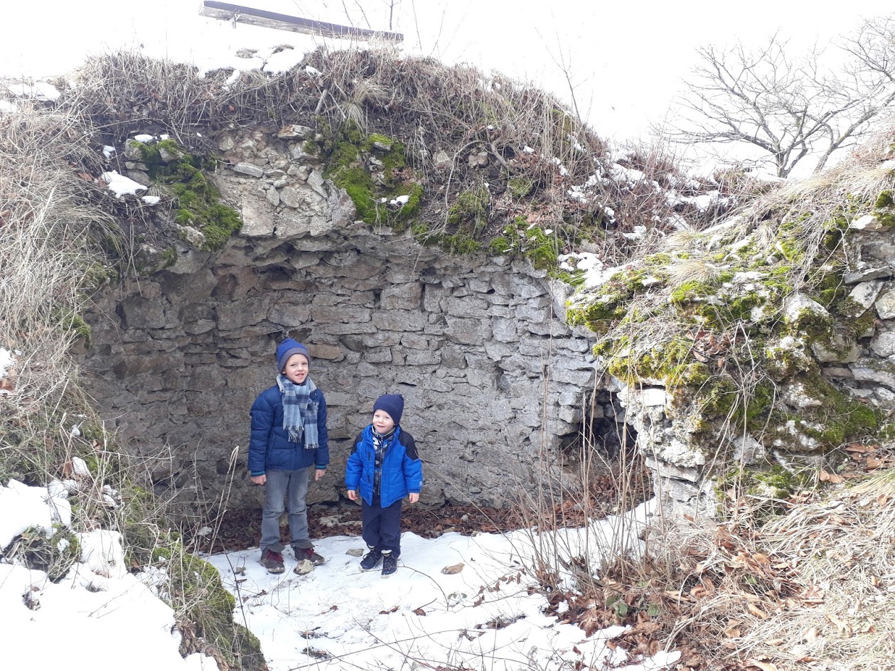 Our house is down in the bottom of the valley. When I go up on to the ridge where our fields are, I can see the nearby mountains "Vihorlatske vrchy". The largest of which, Vihorlat, is a sleeping (hopefully) volcano. Nearby it is the mountain lake "Morske Oko" which is nice to go see. In the first half of the previous century one of the Biltmore women married the count from there and she was responsible for enlarging the lake and adding some structures around it. I guess with WWII they fled Czechoslovakia and didn't return. And, like all of Europe, there are various ruined castles within easy driving distance. Last week my sons and I visited Tibava Castle, which was never very big, and unfortunately someone destroyed it in the 19th century when there were revolutions in the Austrian empire, but there is a little bit left: