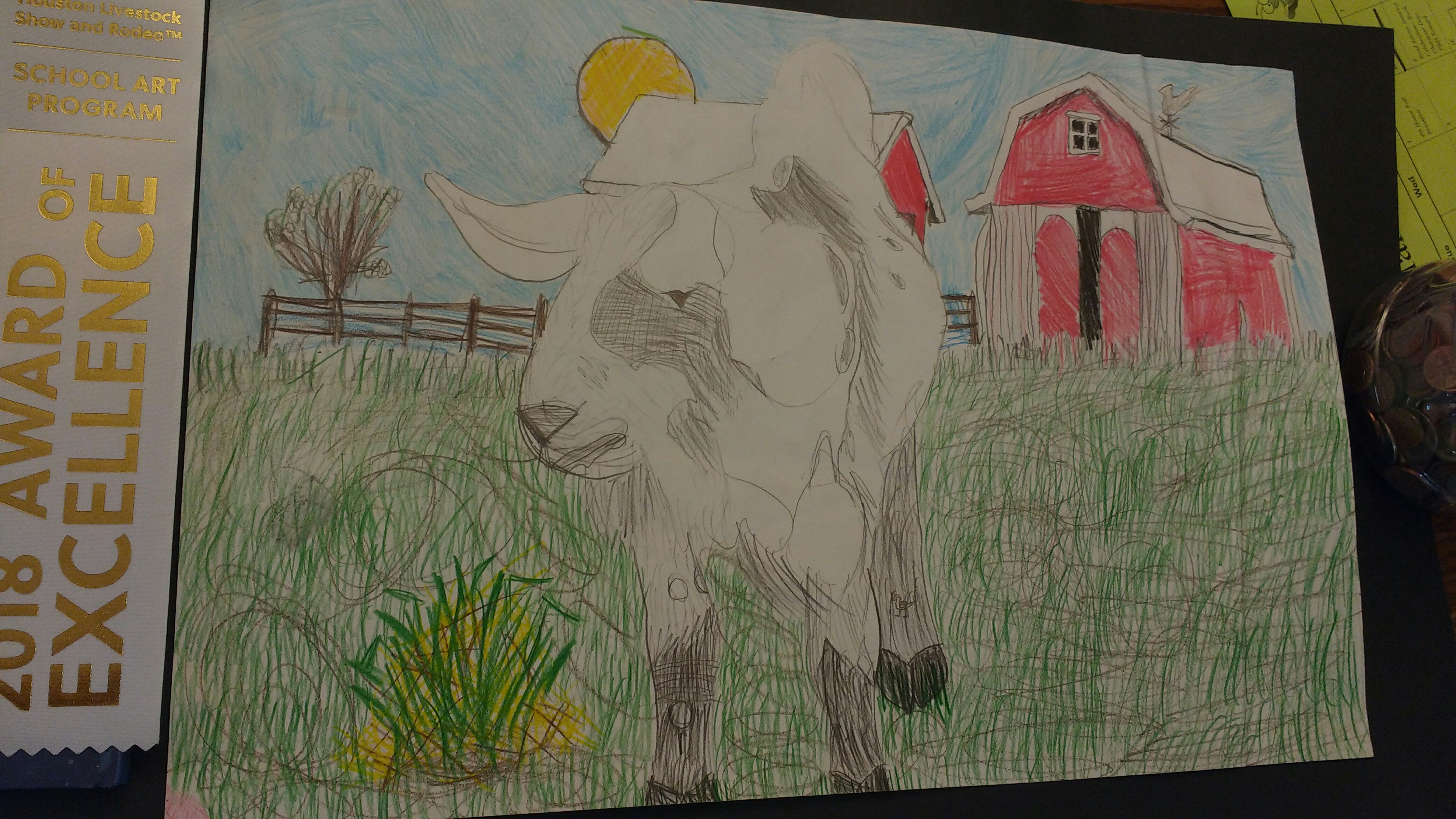 Here is her livestock show drawing. She drew this from her imagination. No copying a picture. She was sad she didn't win a better ribbon.