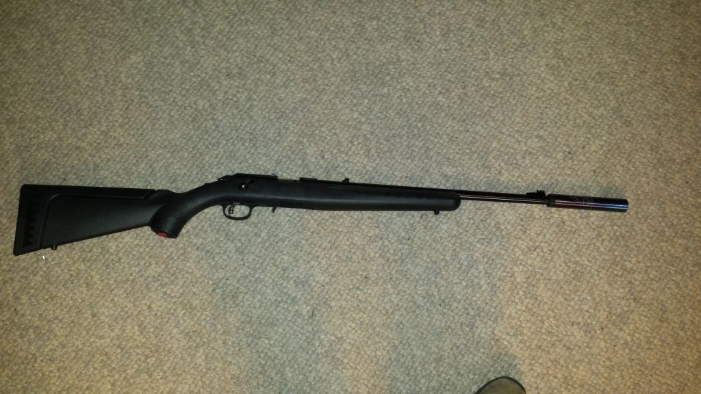 The rifle in the picture is a Ruger American .22 bolt action...that's a suppressor on the barrel.