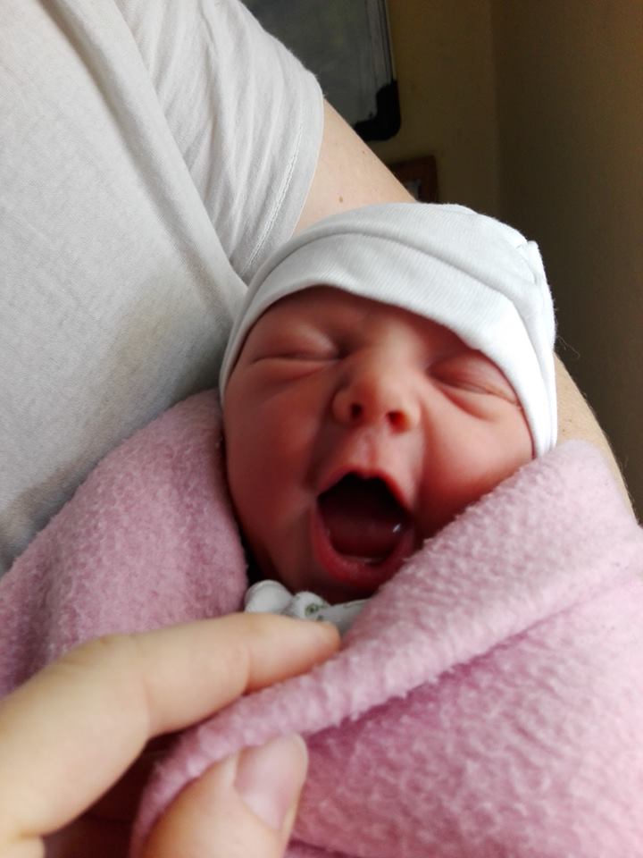 Gloria was born at home. Our second child was accidentally born in the car, the third intentionally in the car, and the same we'd planned for her, by waiting for the water to break at home, then getting in the car and heading to the city, so in case something would be going wrong we could go to the hospital, and if everything was alright just go to bathe the baby at the in-laws and sleep there were the rest of the kids were. But the water breaking was simultaneous with delivery. This worked out easier actually- no drive at all!