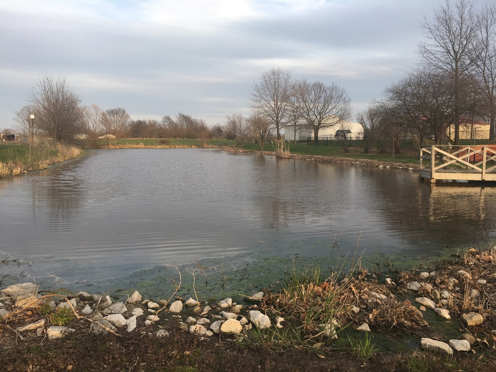 No more snow around our lake this year, but it has been full and overflowing for the last couple of weeks. The view from yesterday evening.