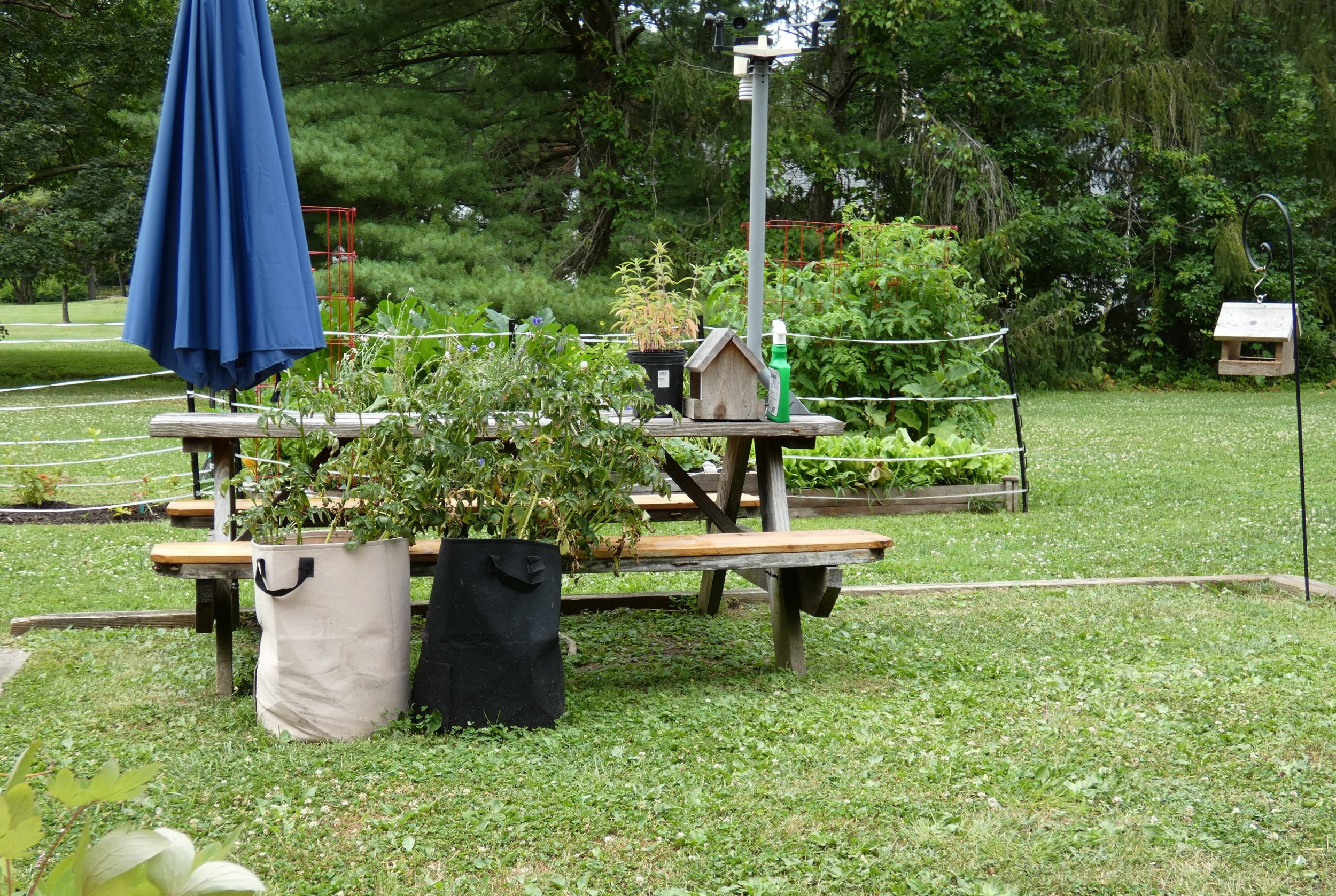Tomatoes up to top of metal cages. Good thing those cages are strong.
