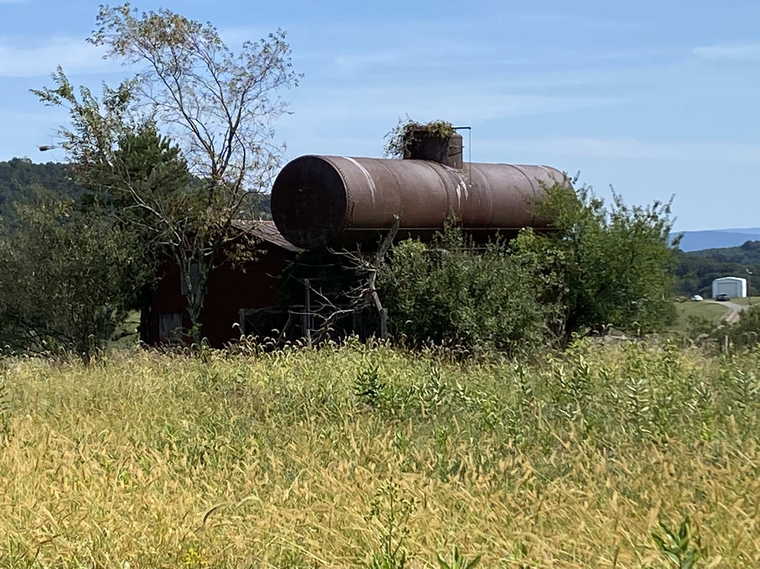 Looks really nice from here. I'm wondering how they got that "ark of a tank" up on the hill? Used as a cistern? Maybe there's a good story behind it. I've seen old mining equipment left behind from centuries past. Maybe give it some time to double think it's potential or need if a well won't give a high flowrate? Maybe use it as a lever to get the owner to knock a bit off of the price for removal?Interesting drive today.