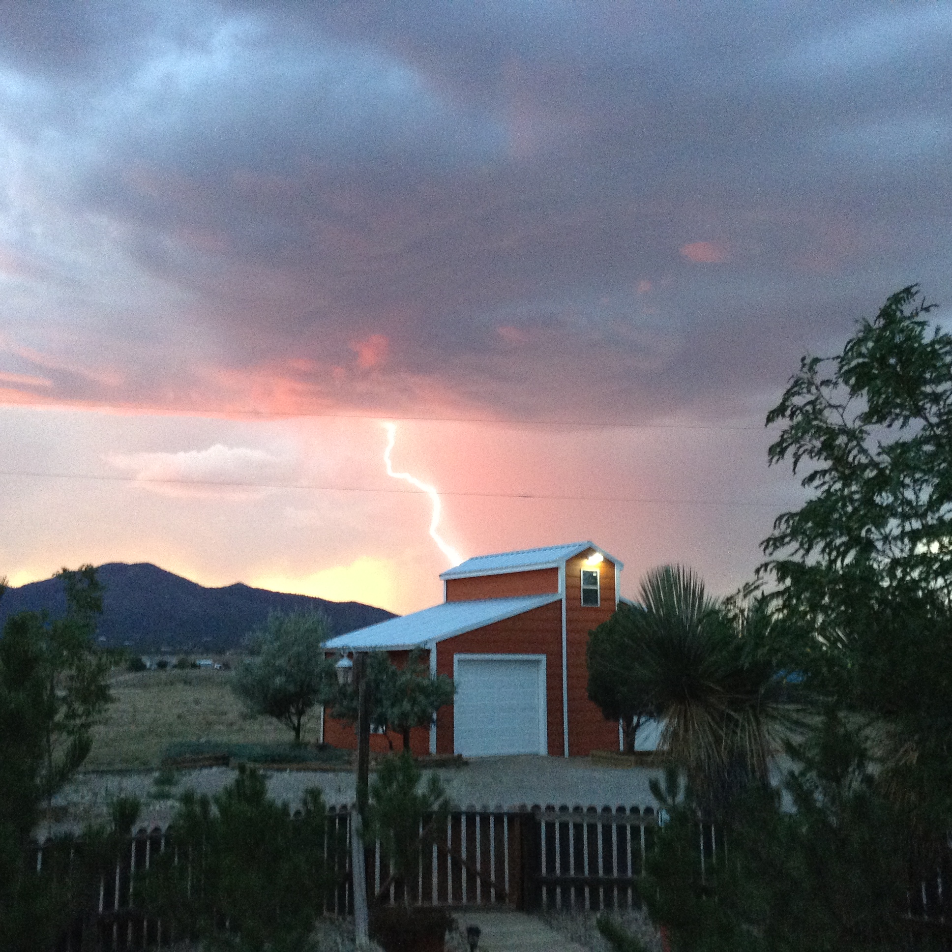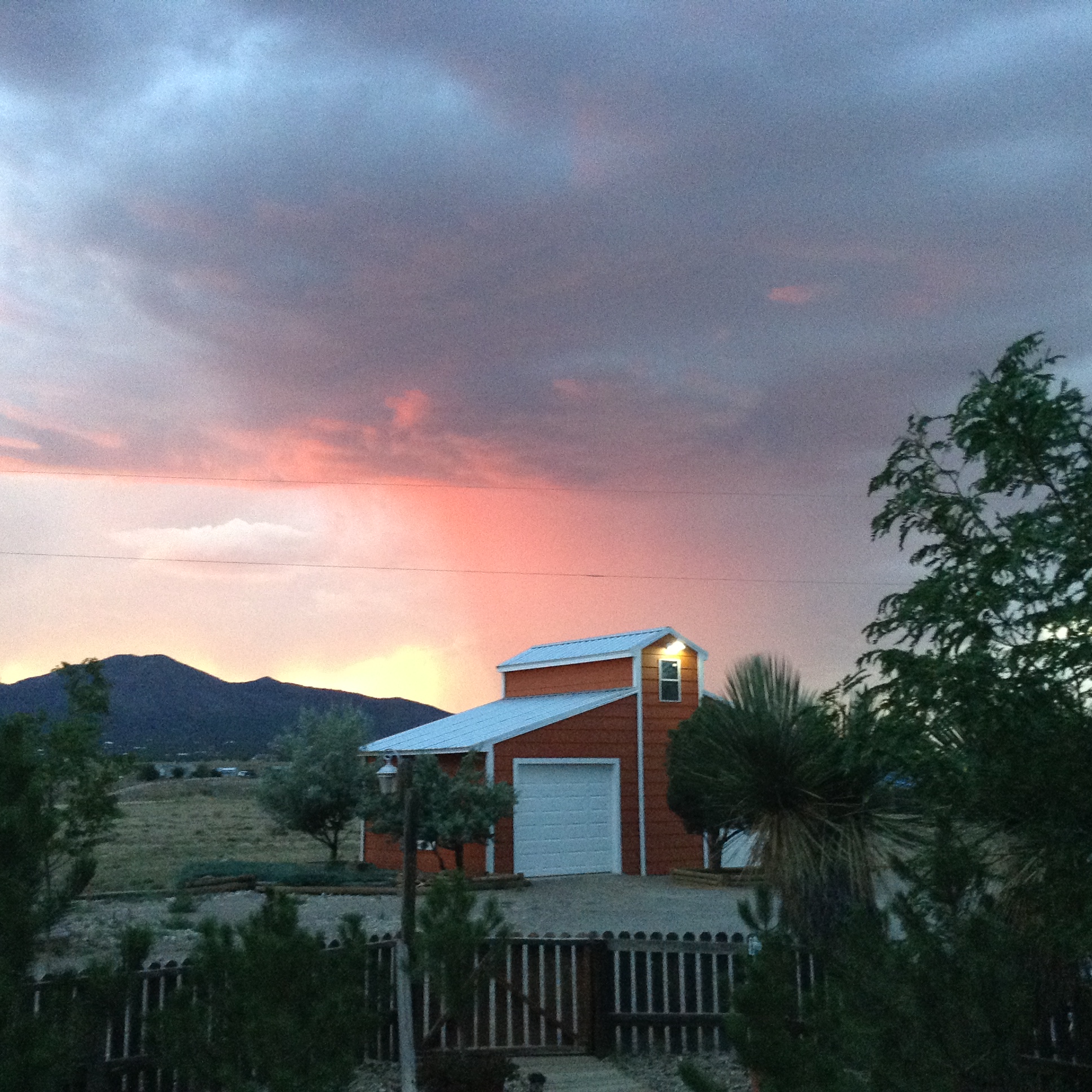 Was just finishing up washing the dinner dishes and heard some thunder. Went out and saw both a sunset and storm at the same time. Couldn't get any better pics of the lightning, but it was awesome, streaking across the sky and hitting the ground at the same time. It looks like it's going to the east of us, but we might get a little sprinkle.:shocked: