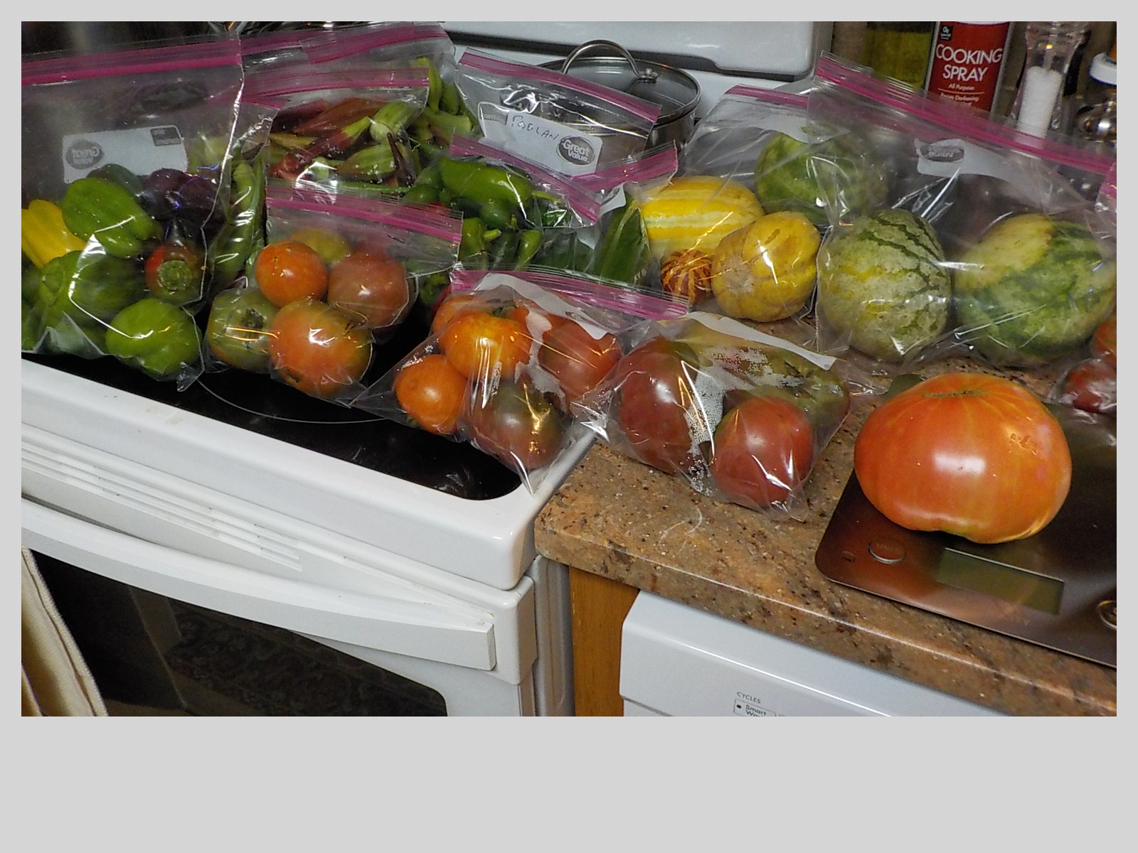 Drew, have you totaled the weight of the vegetables taken to the panty? I know you had weighed the potatoes, but was wondering about all the rest. Any guesses?